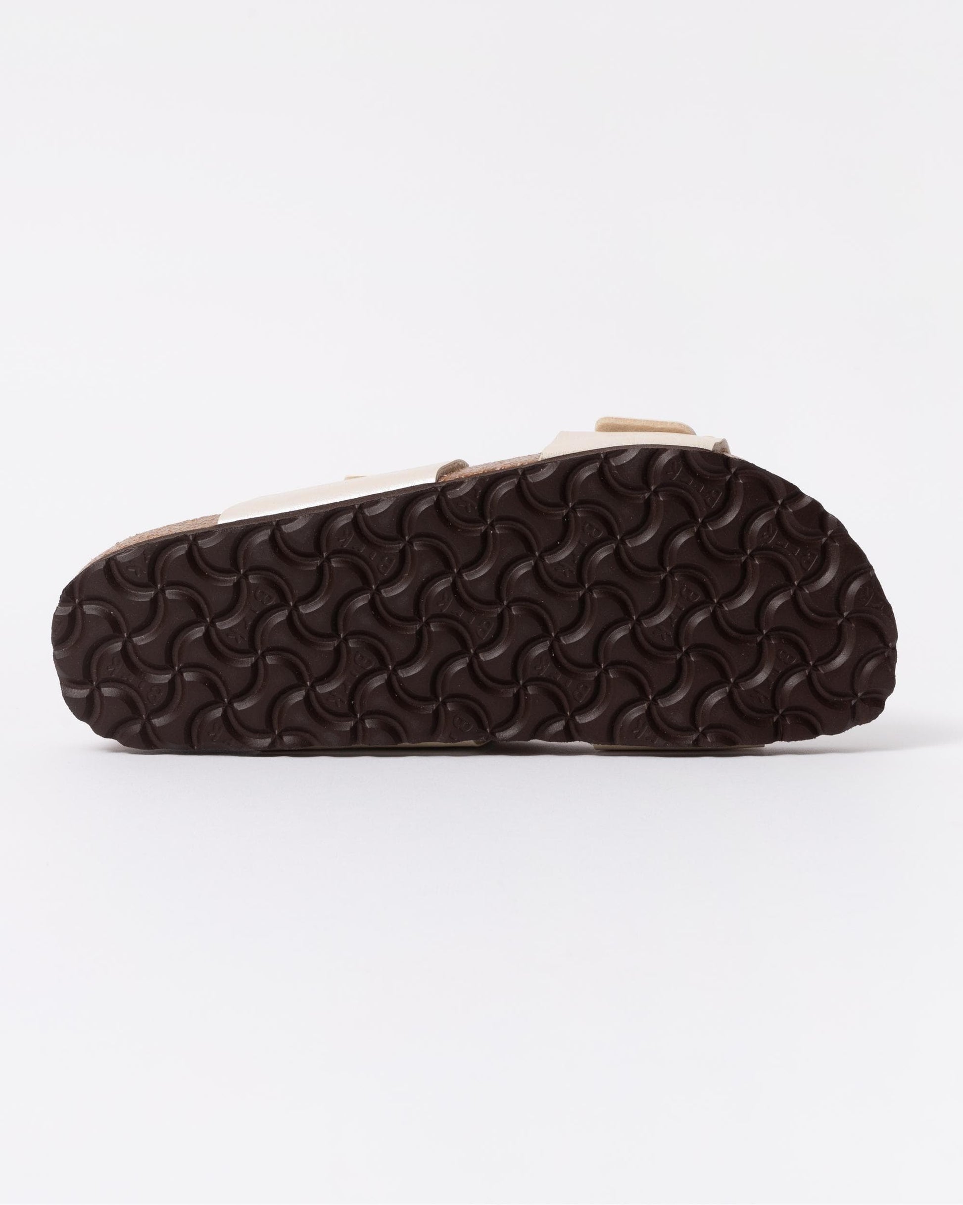 The BIRKENSTOCK Sydney proves that fashion and functionality can go hand in hand. With its two simple straps, it’s a real hit with women who want both high fashion and comfort. The shiny, gently rounded padded buckles are especially eye-catching. The upper is made from the skin-friendly, hard-wearing synthetic material Birko-Flor® with a shiny patent coating.