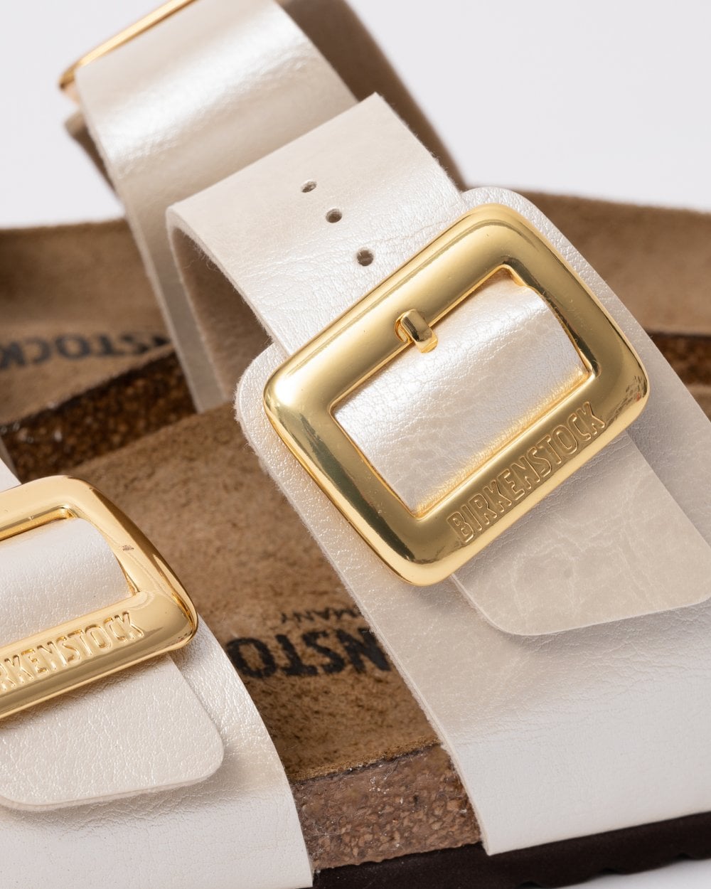 Sydney Cushion Big Buckle Womens Birko-Flor Patent Sandals - Graceful Pearl White