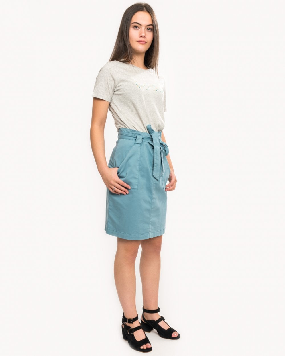 A chino skirt by BOSS Womenswear, designed in stretch cotton with a regular fit. This high-rise skirt features a fabric belt, a zip closure and a paper-bag waistband for a relaxed look. Finished with large patched pockets, this piece pairs effortlessly with a blouse, T-shirt or slim-cut knitwear.