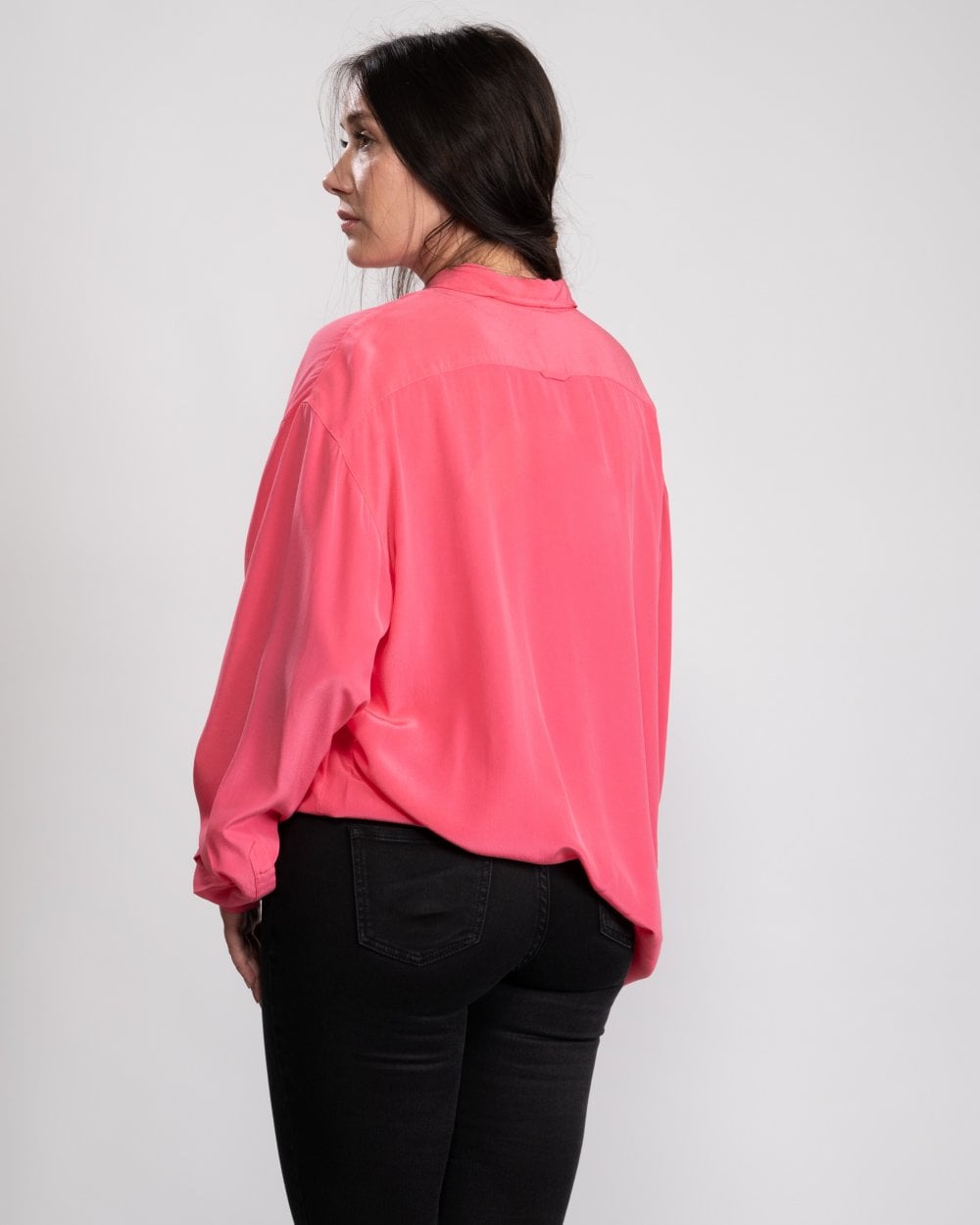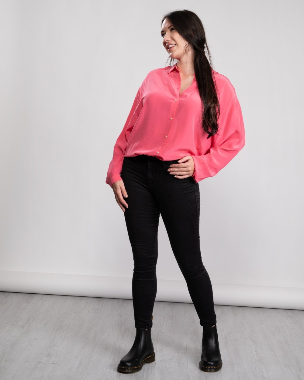 A fluid blouse in pure silk with a soft washed finish by BOSS Womenswear. Presenting a contemporary take on feminine elegance, this trend-led piece features a point collar, shirt-style squared cuffs and mother-of-pearl buttons to enhance the luxe look. Offset the loose fit by teaming it with skinny distressed denim for a modern contrast of shape and texture.