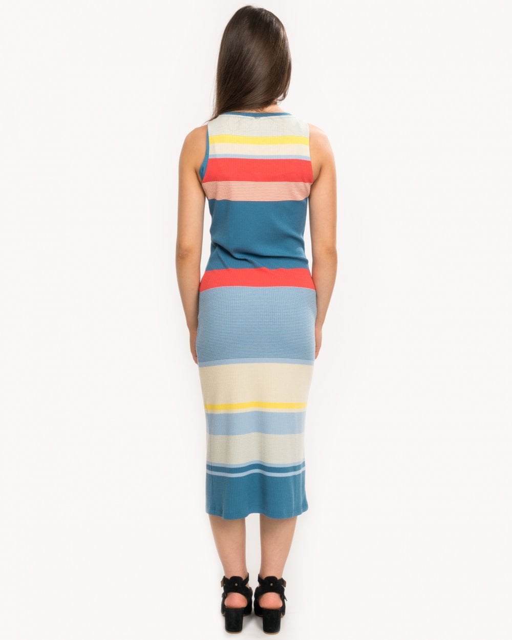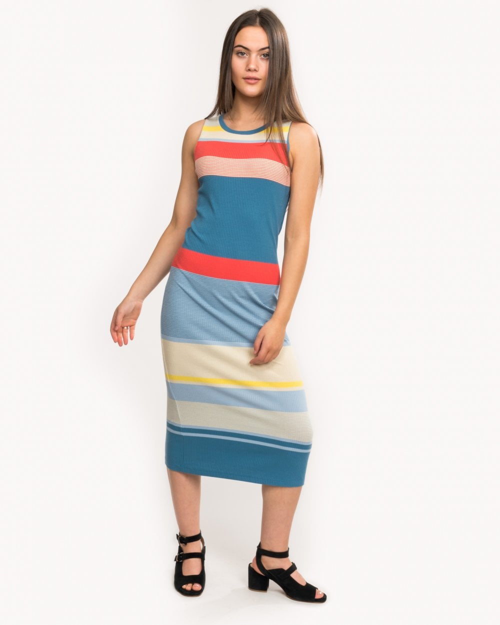 A midi dress by BOSS Womenswear, crafted in slim-fitting stretch fabric for a feminine silhouette. This sleeveless dress is designed with a ribbed structure and irregular stripes, delivering a summery and playful look. Add sporty trainers to this contemporary piece for a laid-back ensemble.