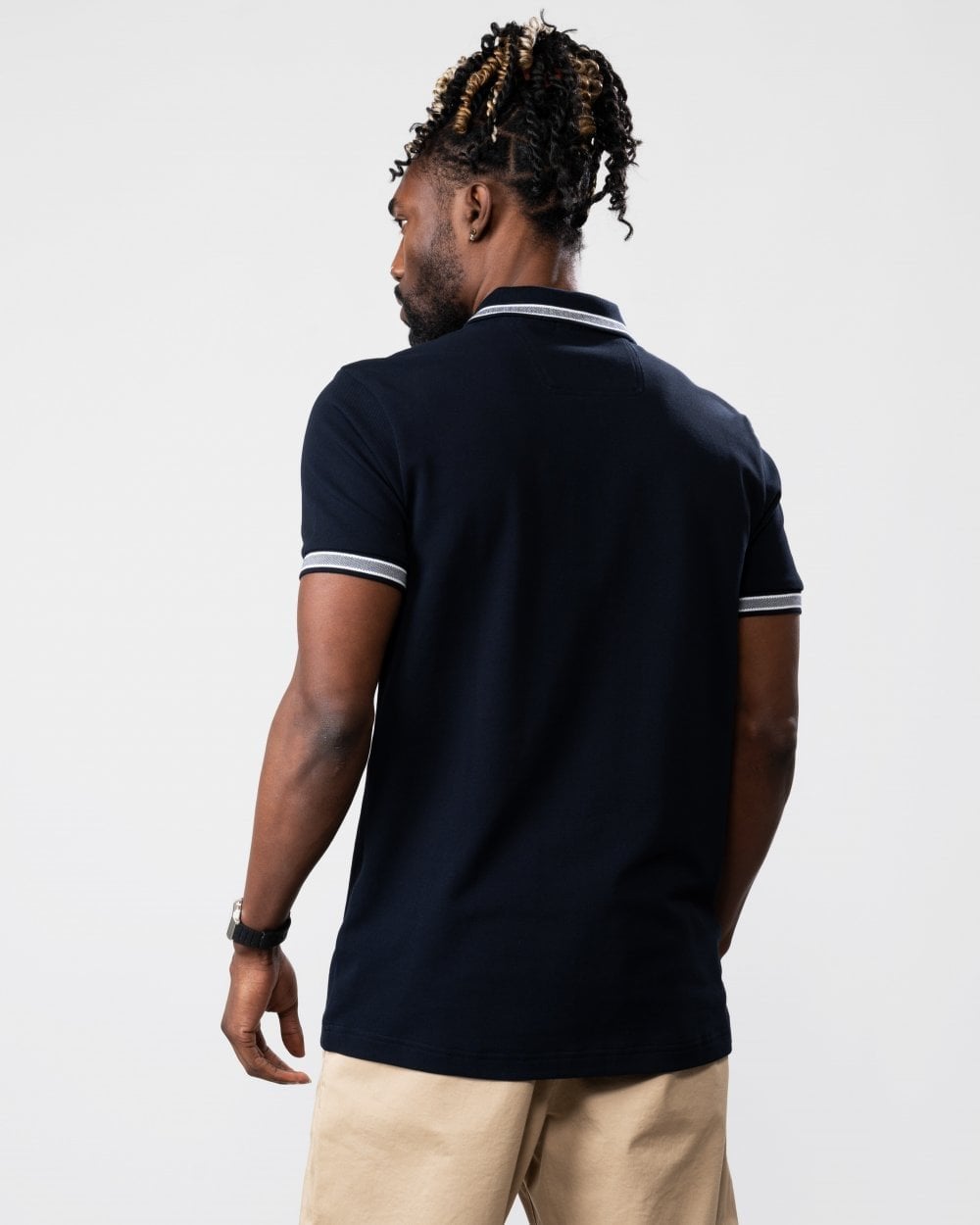 Paddy Mens Cotton-Piqué Polo Shirt with Contrast Logo - Dark Blue 402