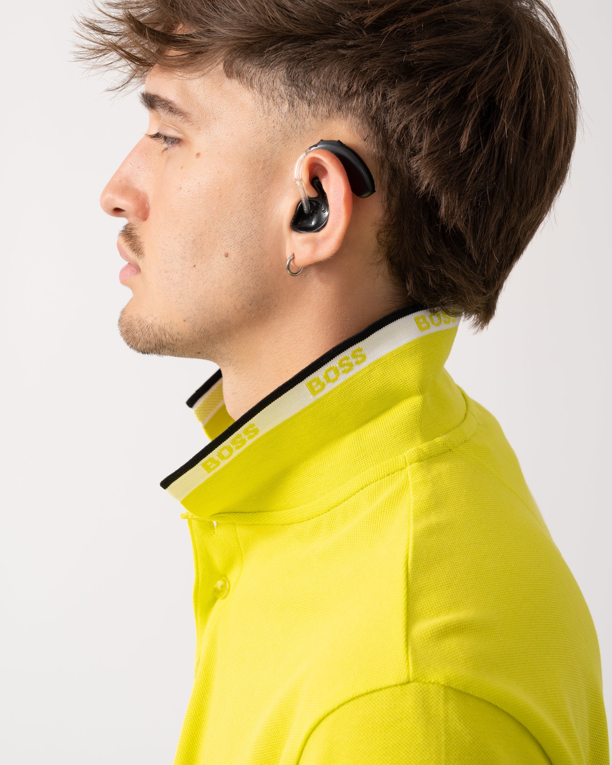 BOSS Green Paddy Mens Cotton-Piqué Polo Shirt with Contrast Logo in Bright Yellow 732