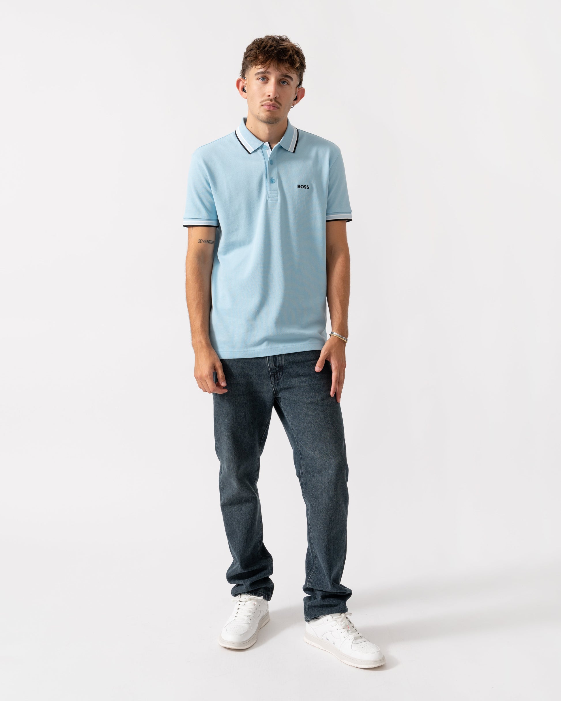 BOSS Green Paddy Mens Cotton-Piqué Polo Shirt with Contrast Logo in Light/Pastel Blue 455