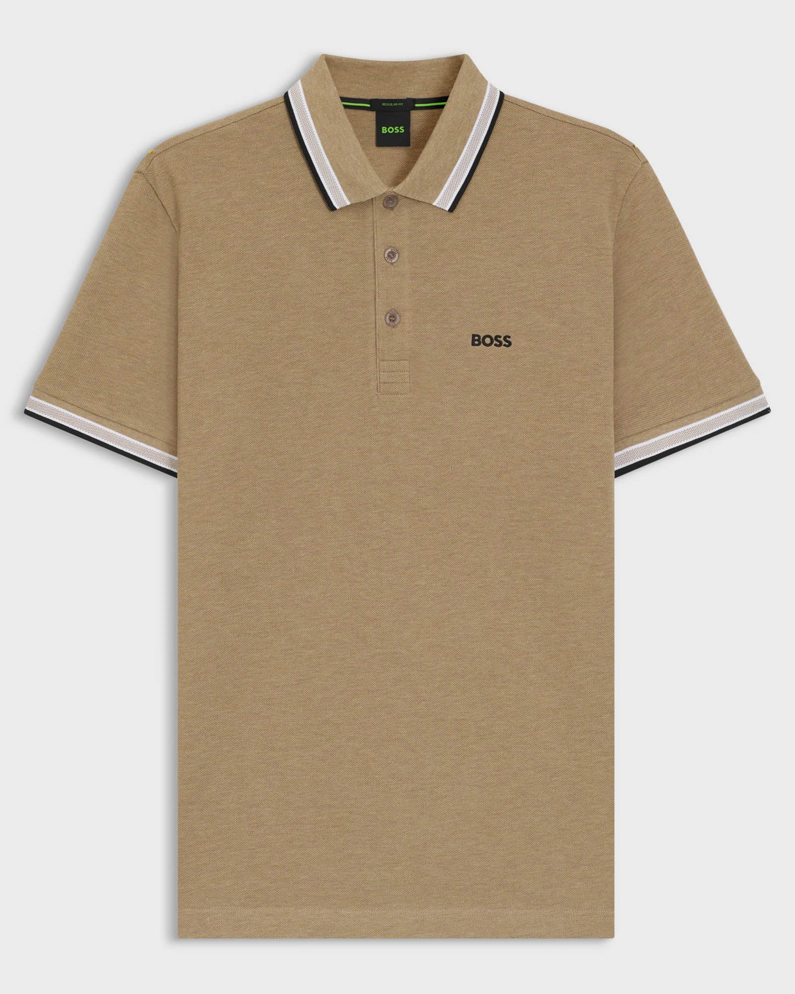 BOSS Green Paddy Mens Cotton-Piqué Polo Shirt with Contrast Logo - Light Beige 274 - Light Beige 274