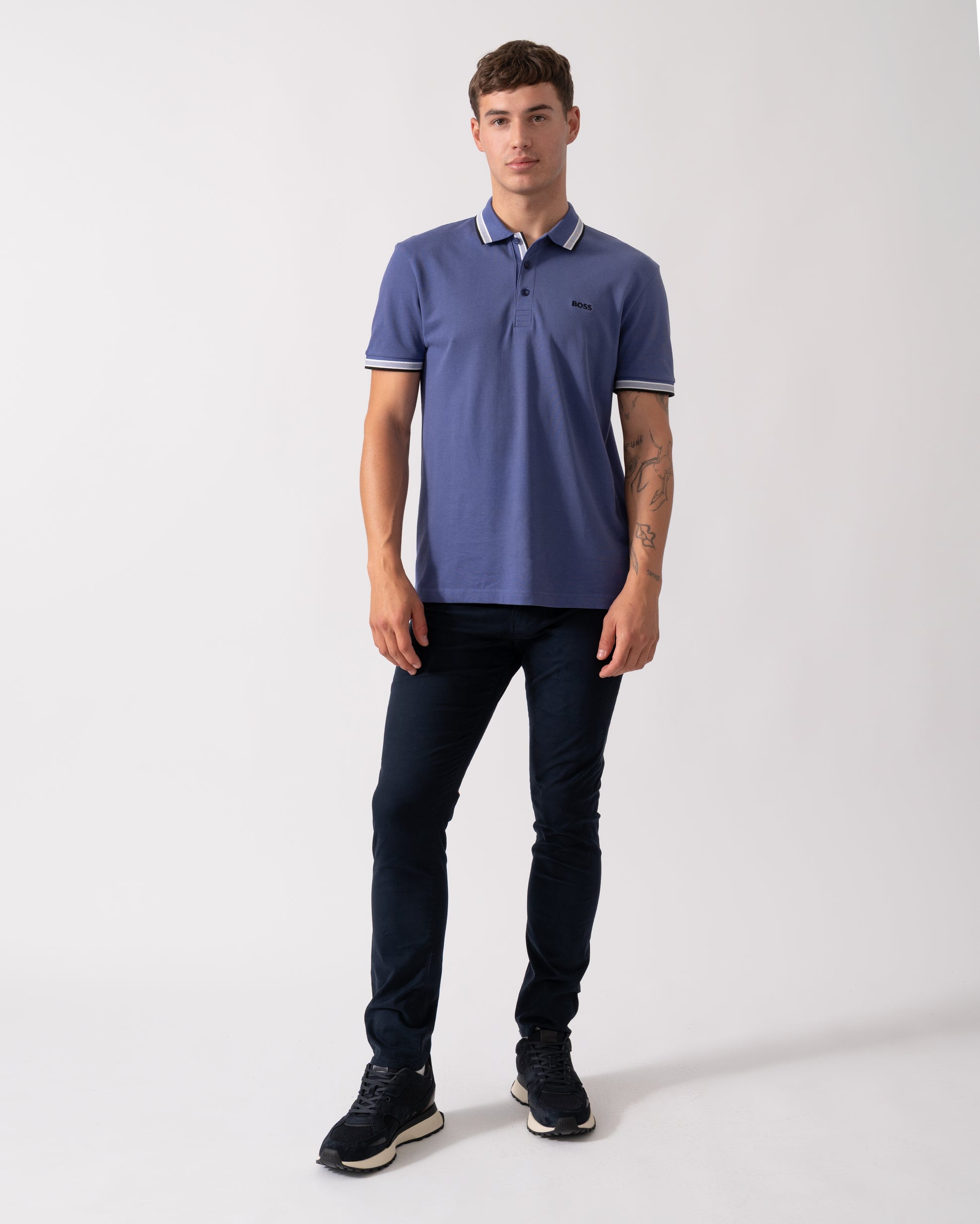 BOSS Green Paddy Mens Cotton-Piqué Polo Shirt with Contrast Logo - Medium Blue 420 - Medium Blue 420
