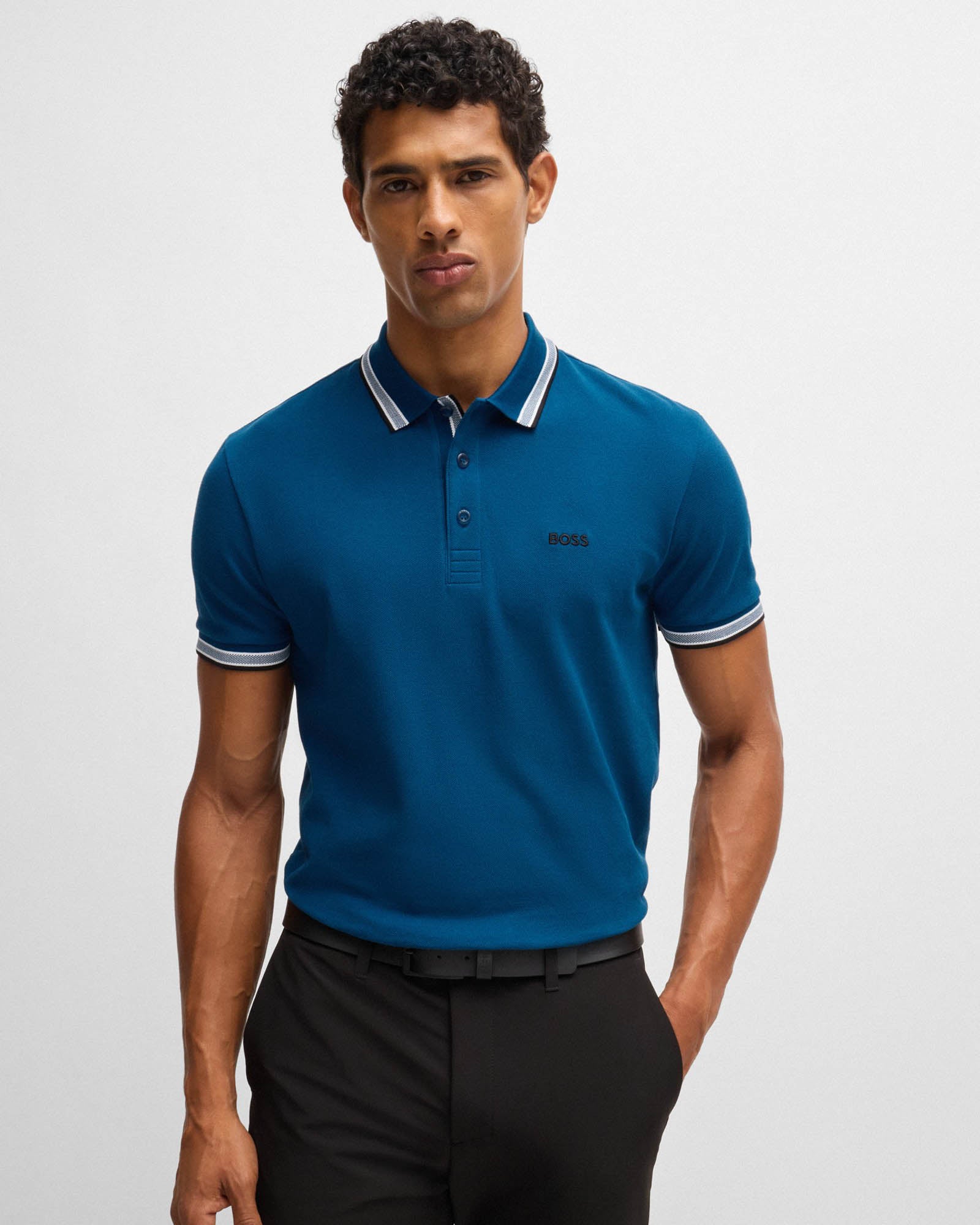 BOSS Green Paddy Mens Cotton-Piqué Polo Shirt with Contrast Logo - Bright Blue 430 - Bright Blue 430