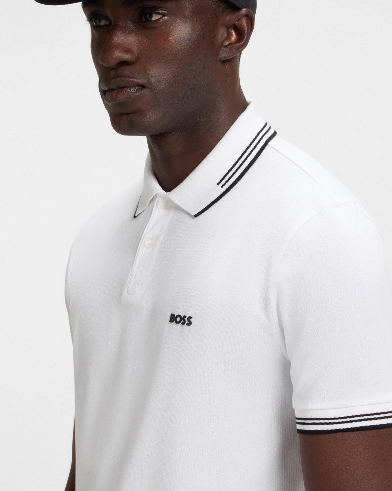 BOSS Green Paul Mens Short Sleeve Polo Shirt With Contrast Tipping NOS - White 100 - White 100