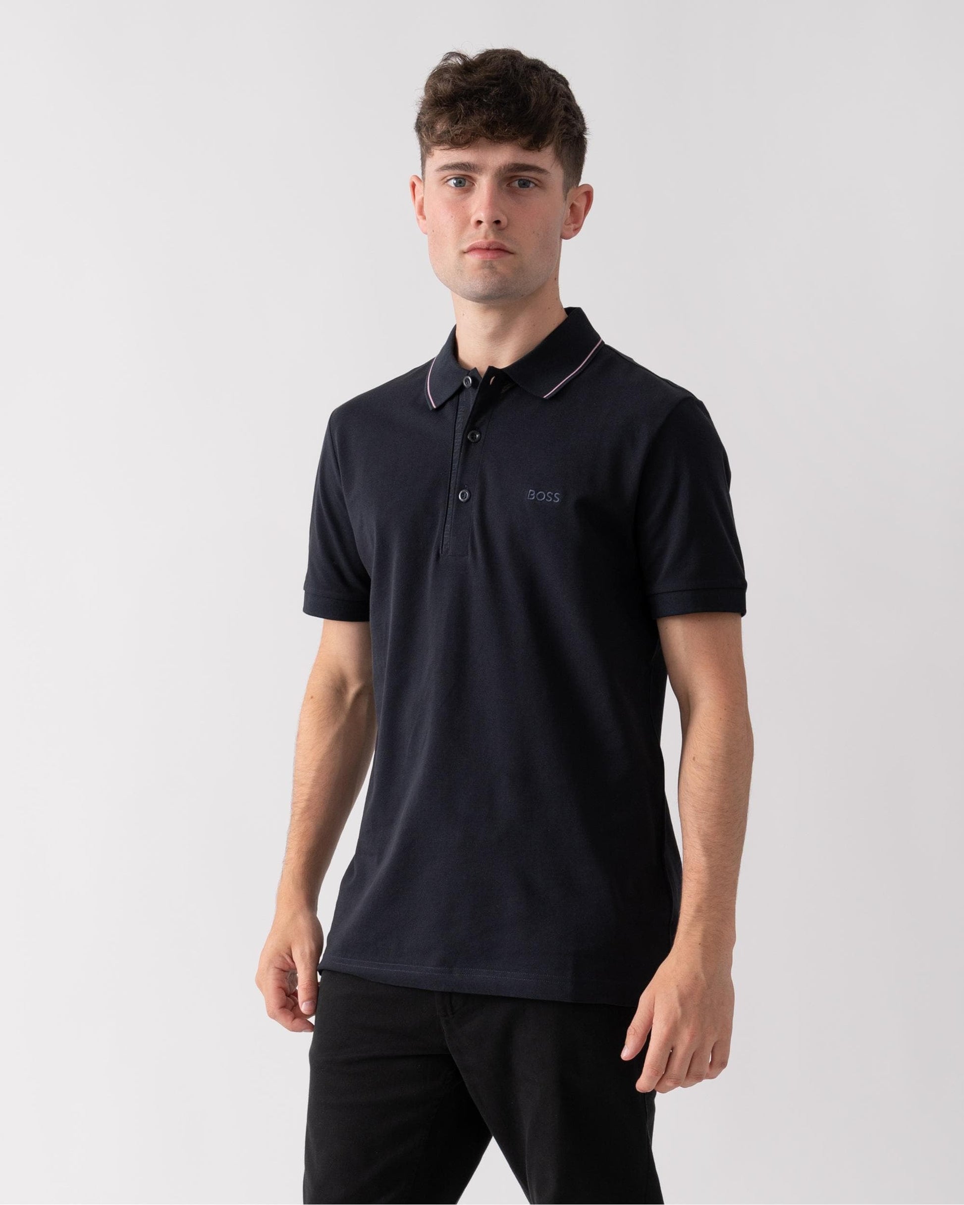 BOSS Green Paule 4 Mens Tipped Collar Polo Shirt NOS - Black 003 - Black 003