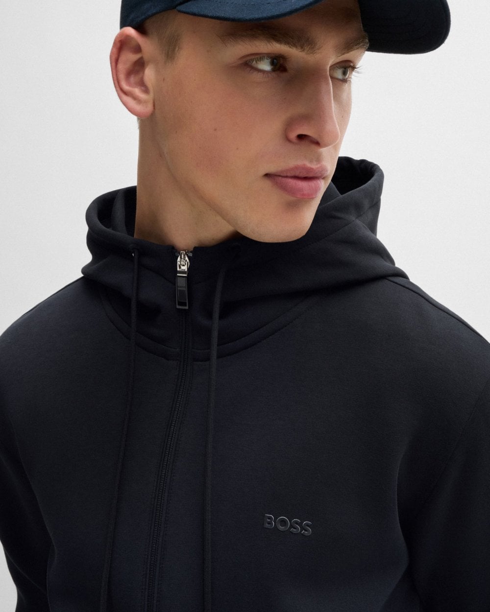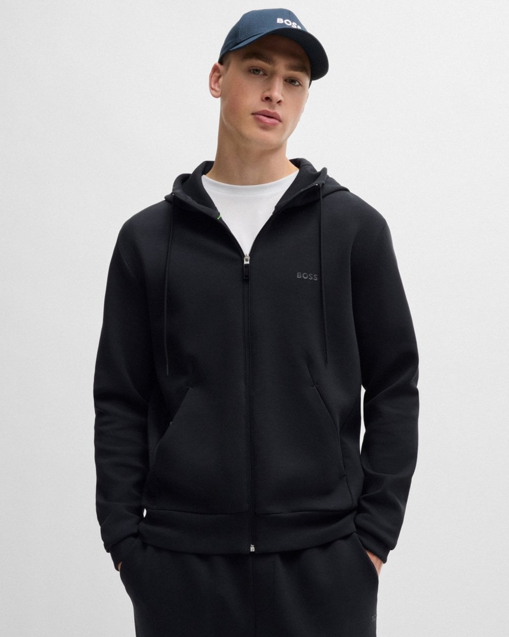 A regular-fit zip-up hoodie created in stretch material with an HD logo print at the left chest by BOSS Menswear.