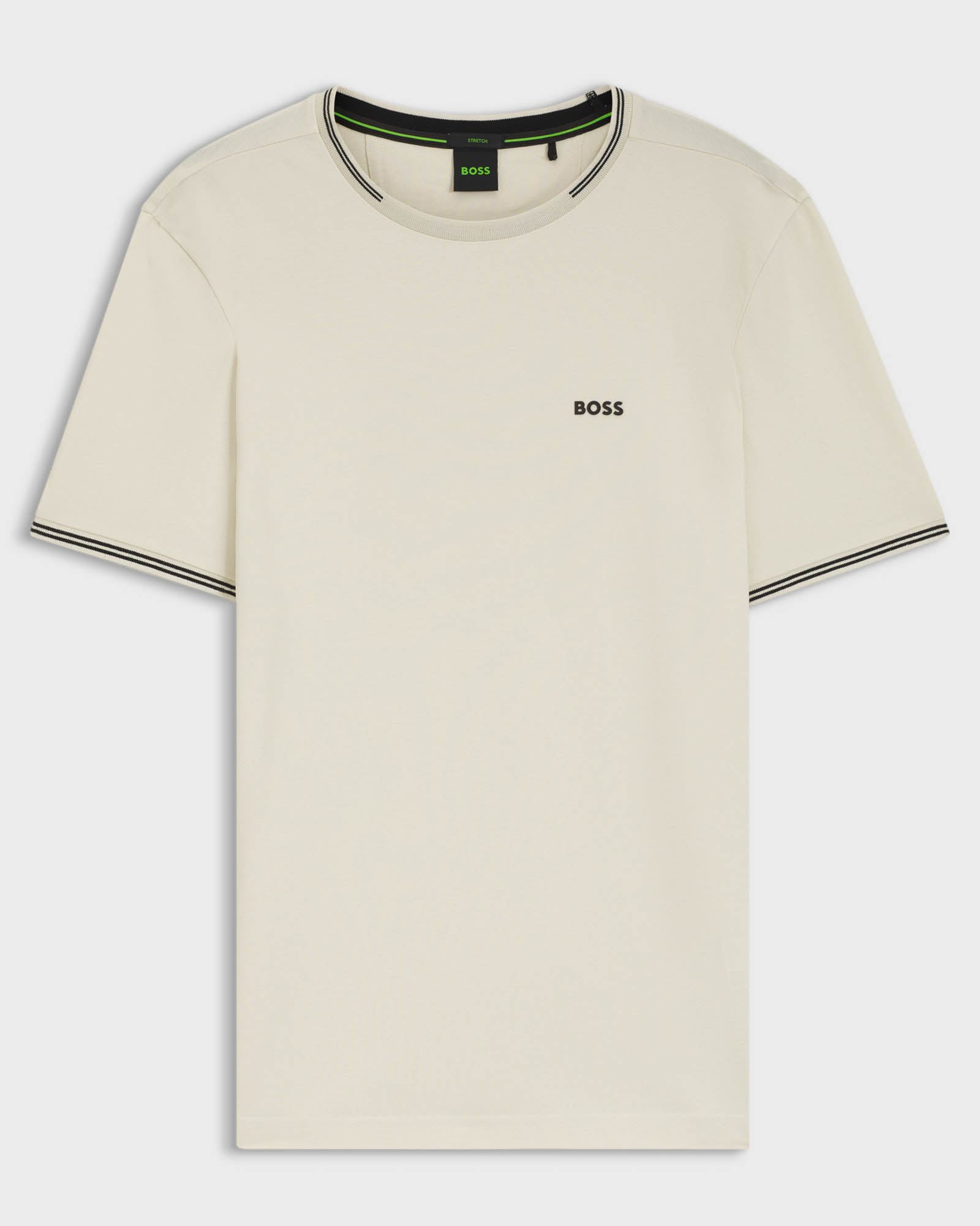 BOSS Green Taul Mens Stretch-Cotton T-Shirt with Stripes and Logo - Natural 104