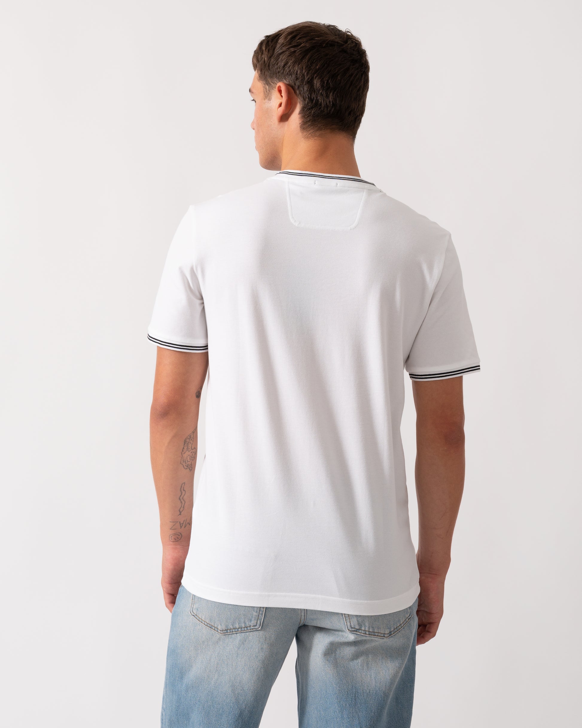 Taul Mens Stretch-Cotton T-Shirt with Stripes and Logo - White 100
