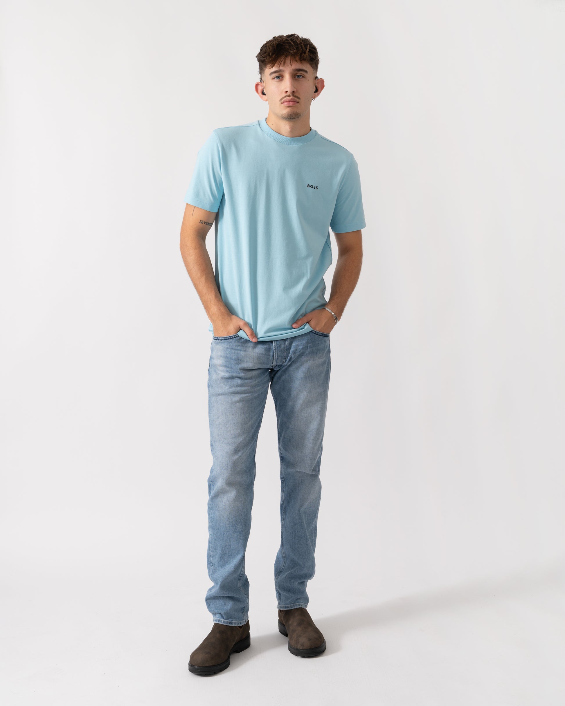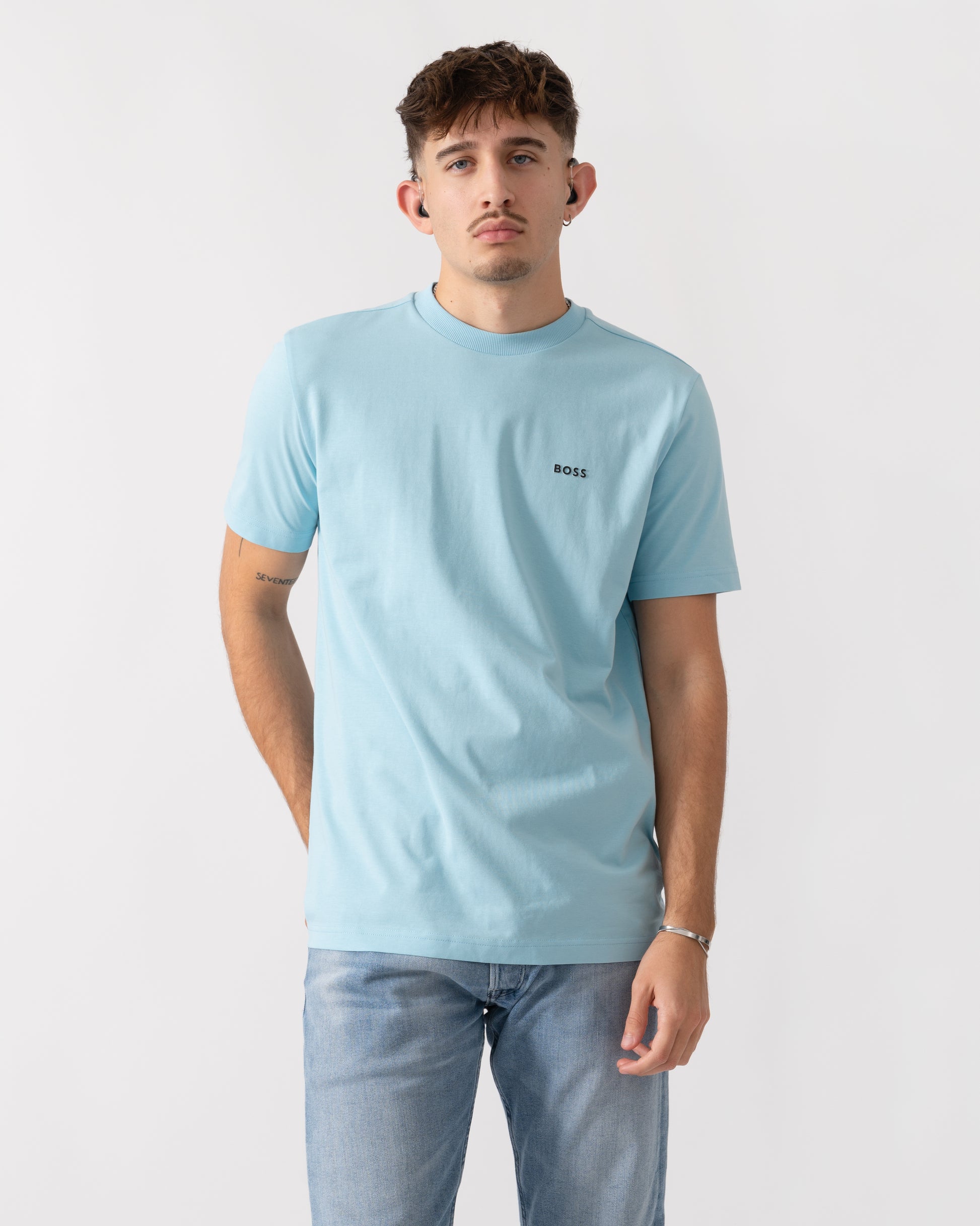 BOSS Green Tee Mens Stretch Cotton T-Shirt with Contrast Logo in Light/Pastel Blue 455
