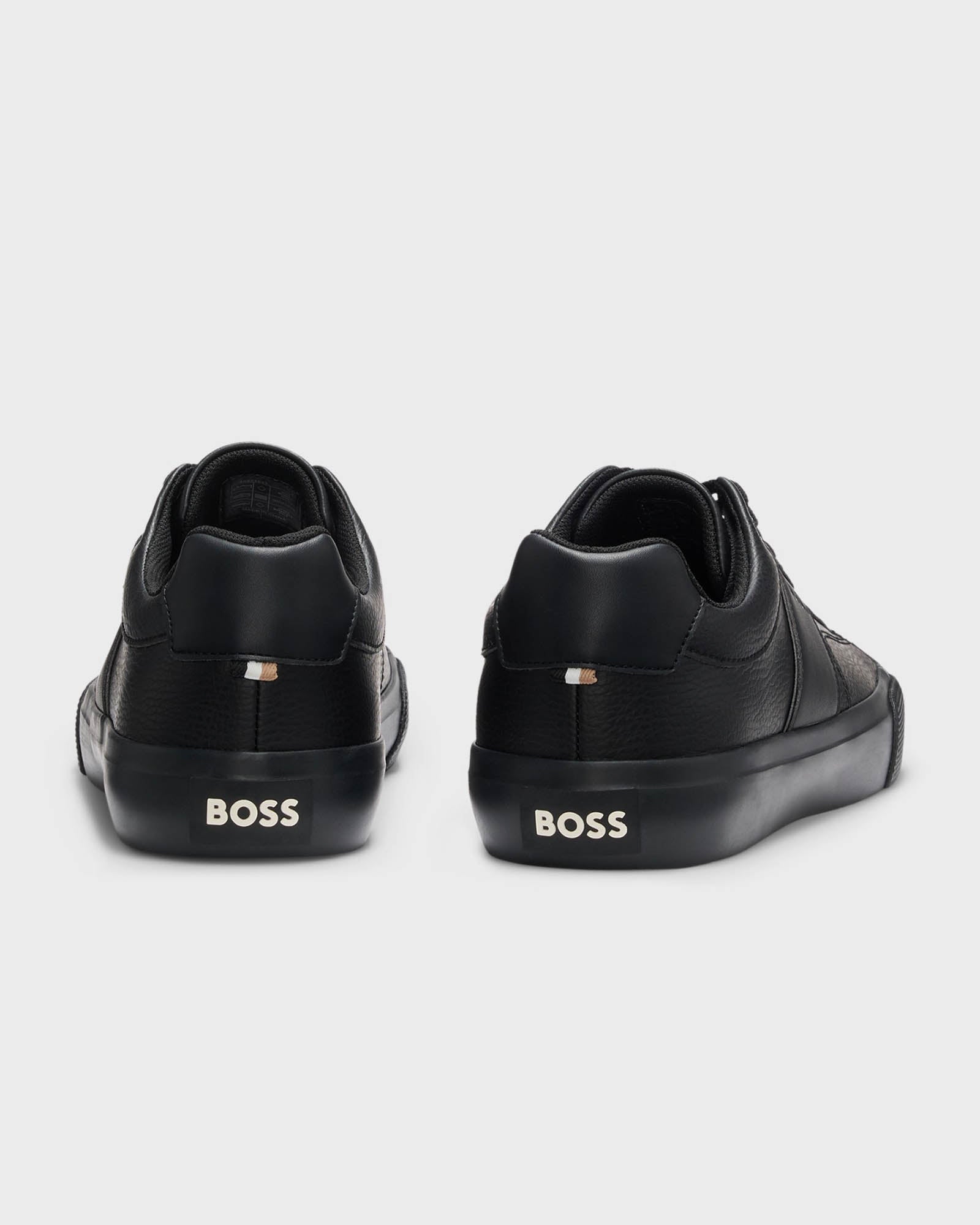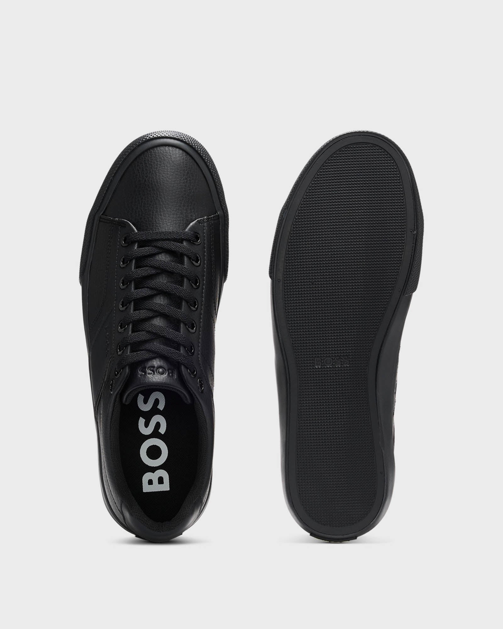 Sporty trainers with piping and debossed branding by BOSS. This pair is crafted in synthetic coated fabric with grained and plain finishes.