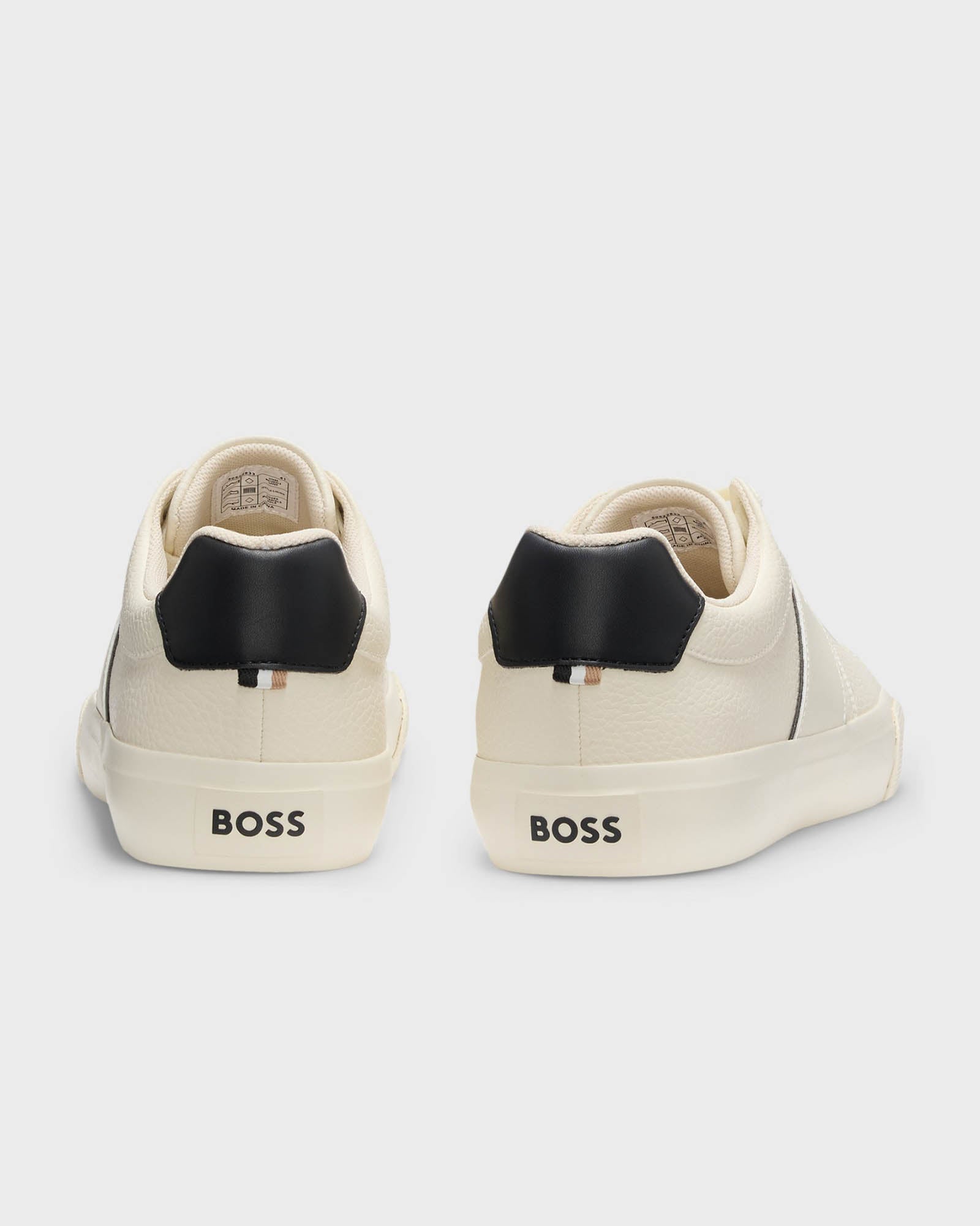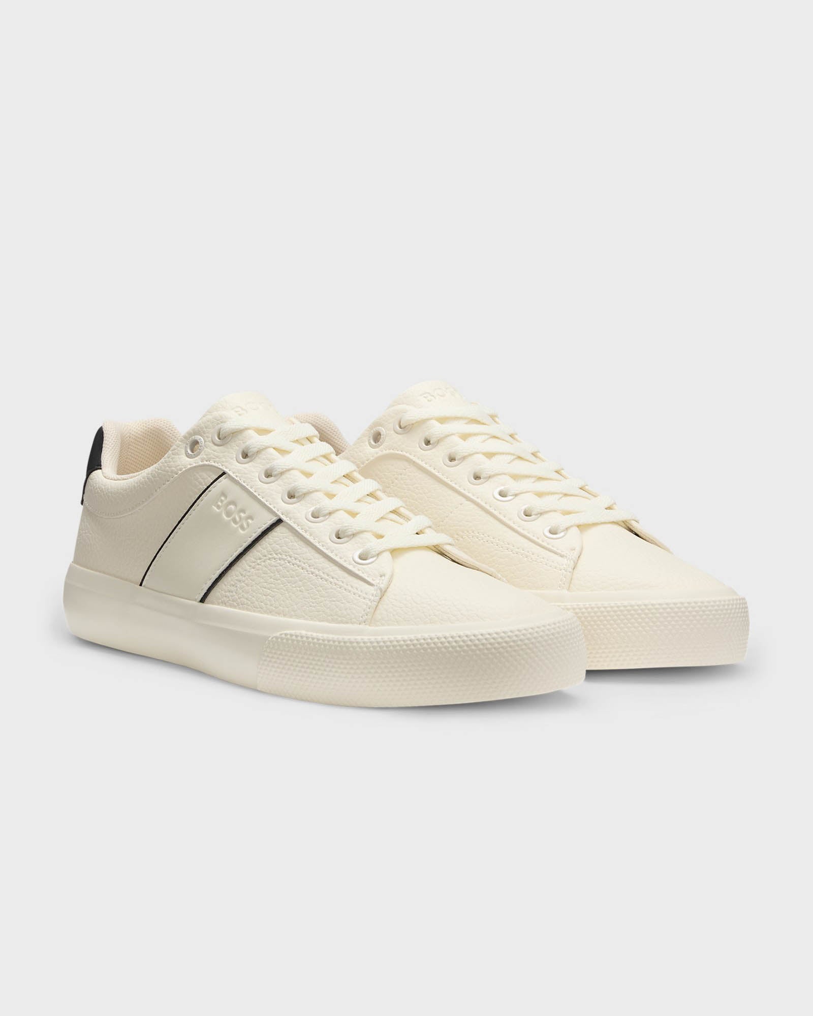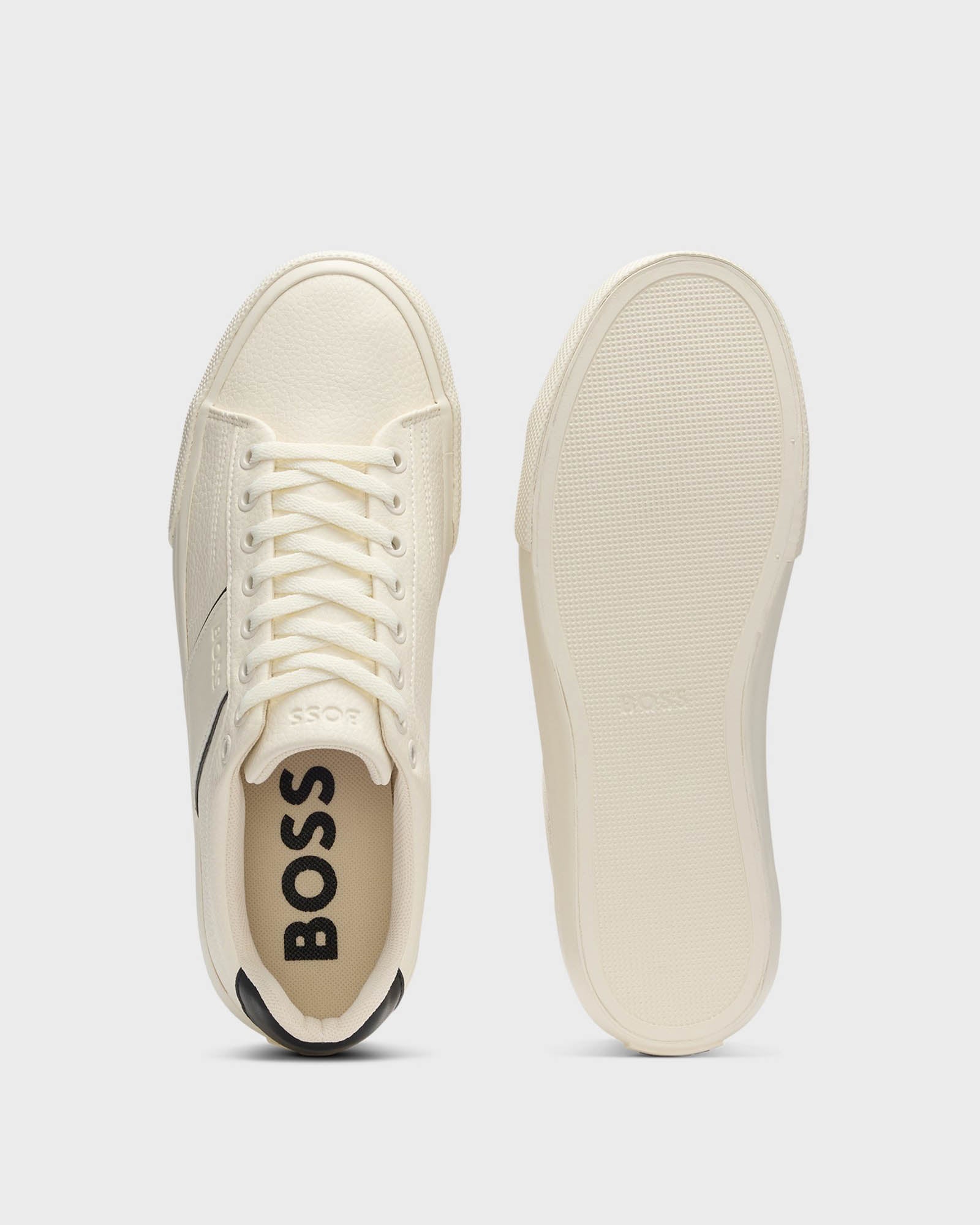 Sporty trainers with piping and debossed branding by BOSS. This pair is crafted in synthetic coated fabric with grained and plain finishes.