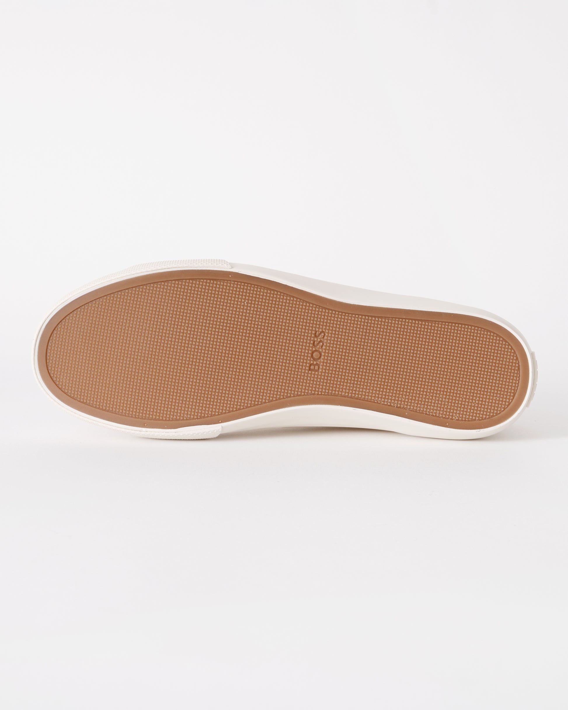 With their sporty rubber sole and low profile, these BOSS Menswear trainers will complete any outfit. Uppers in grained synthetic coated fabric. Embossed logo detail.
