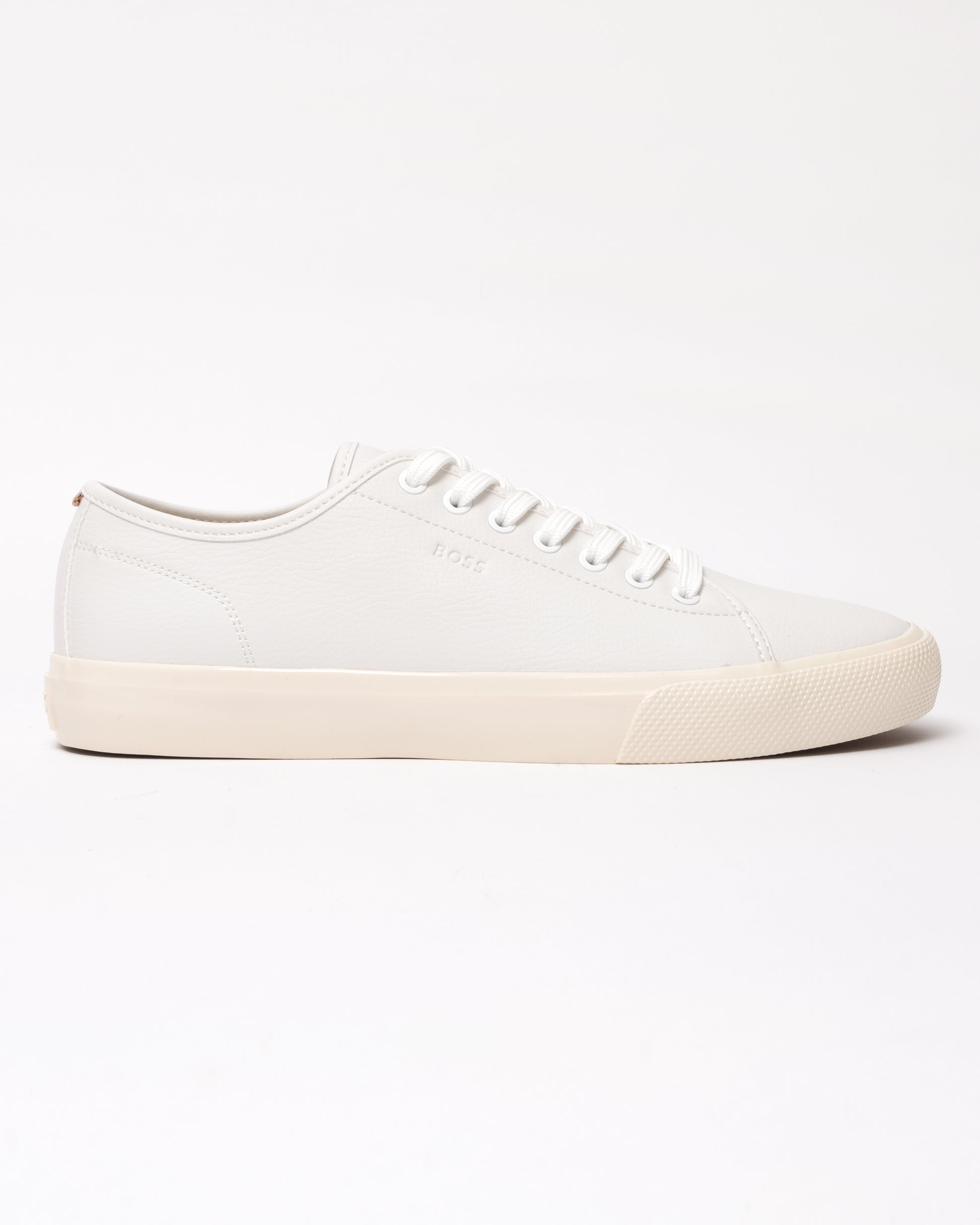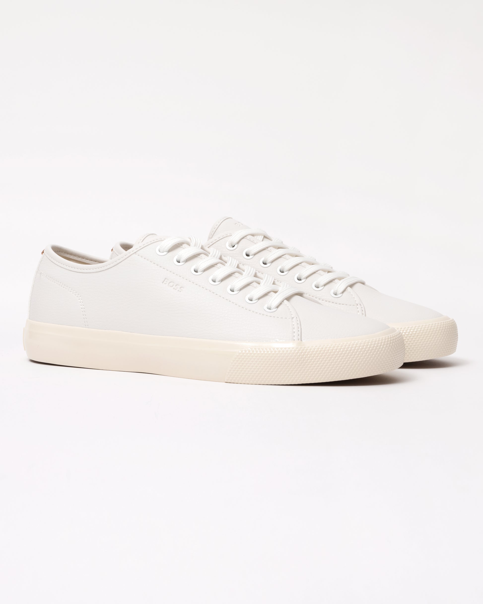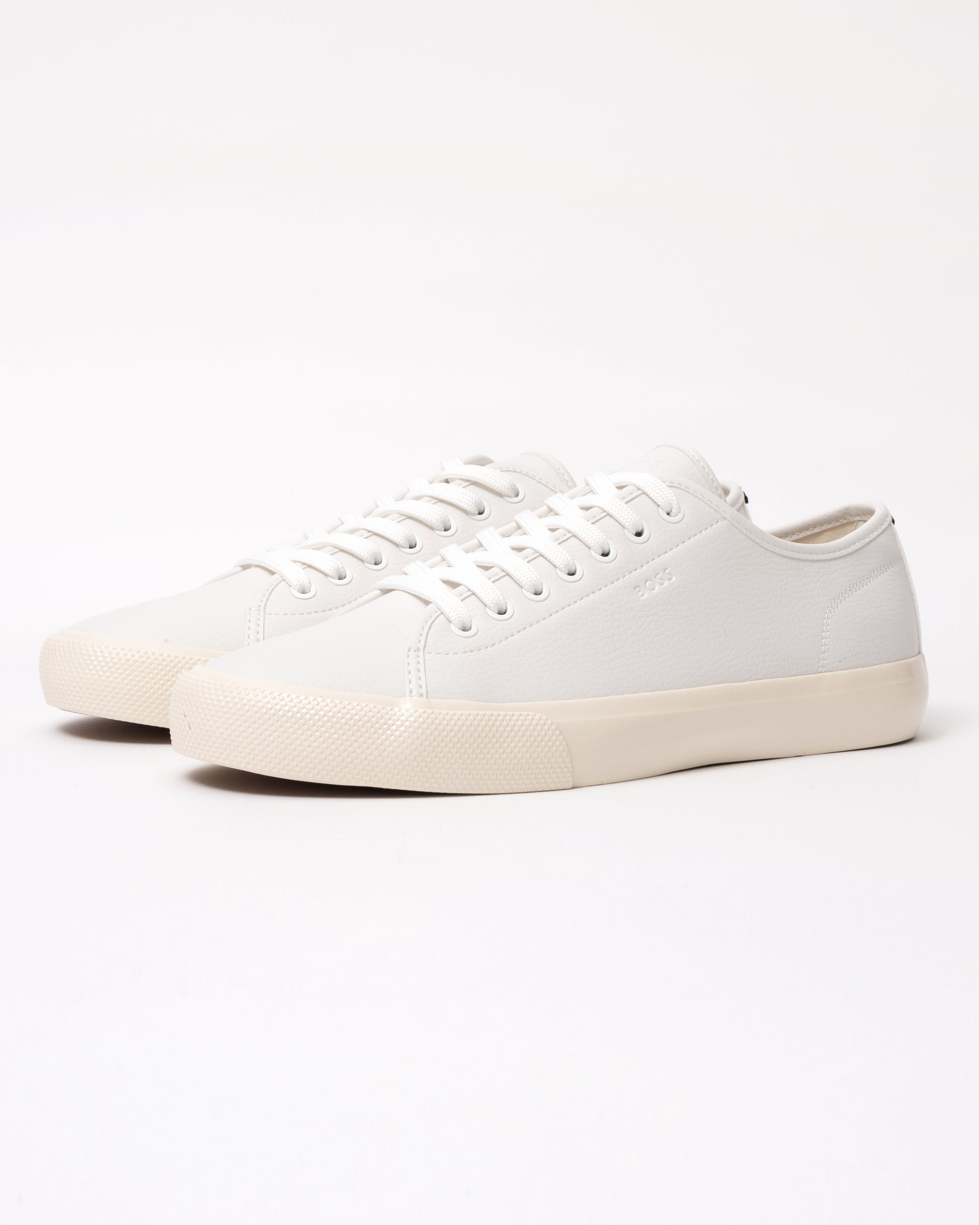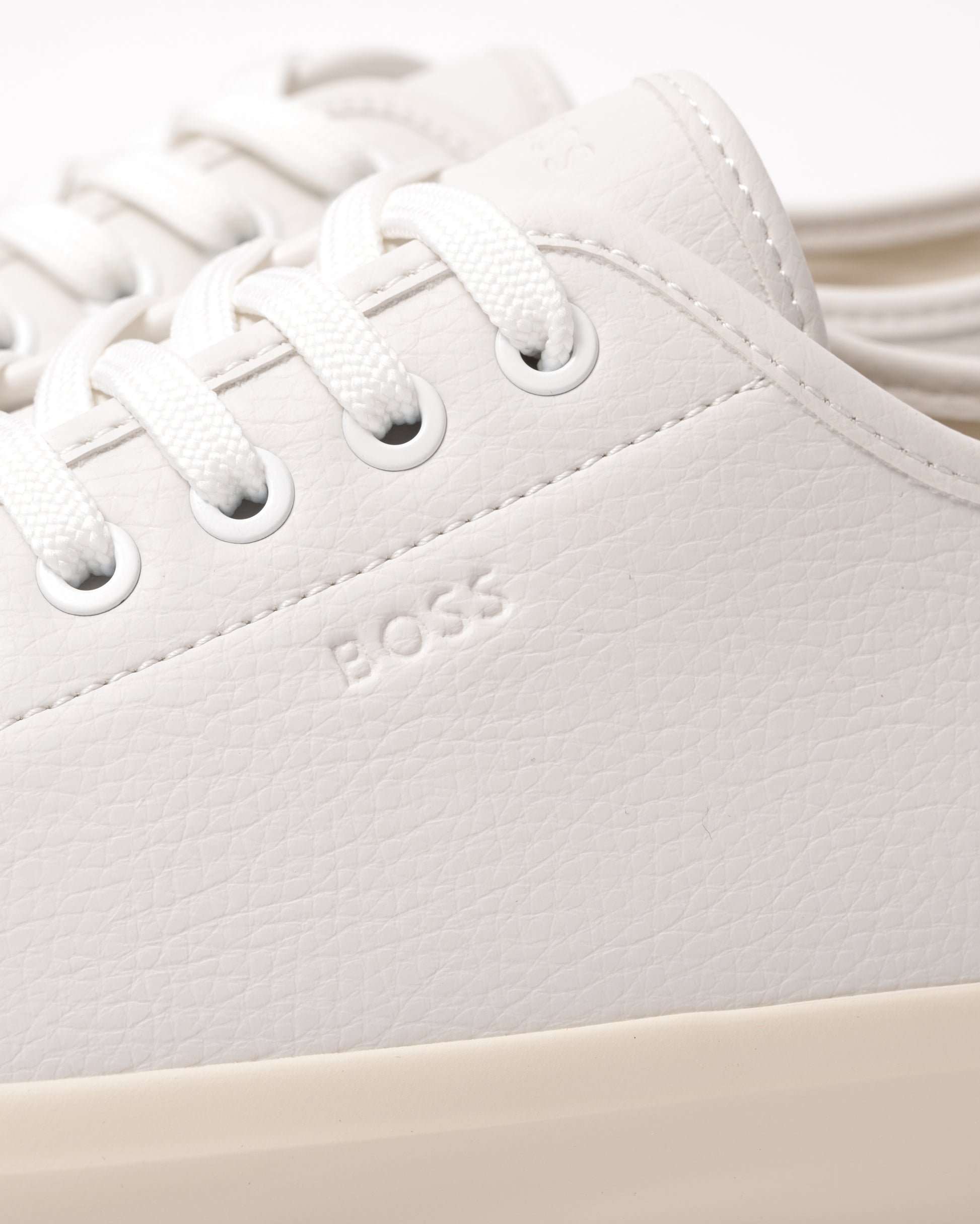 With their sporty rubber sole and low profile, these BOSS Menswear trainers will complete any outfit. Uppers in grained synthetic coated fabric. Embossed logo detail.