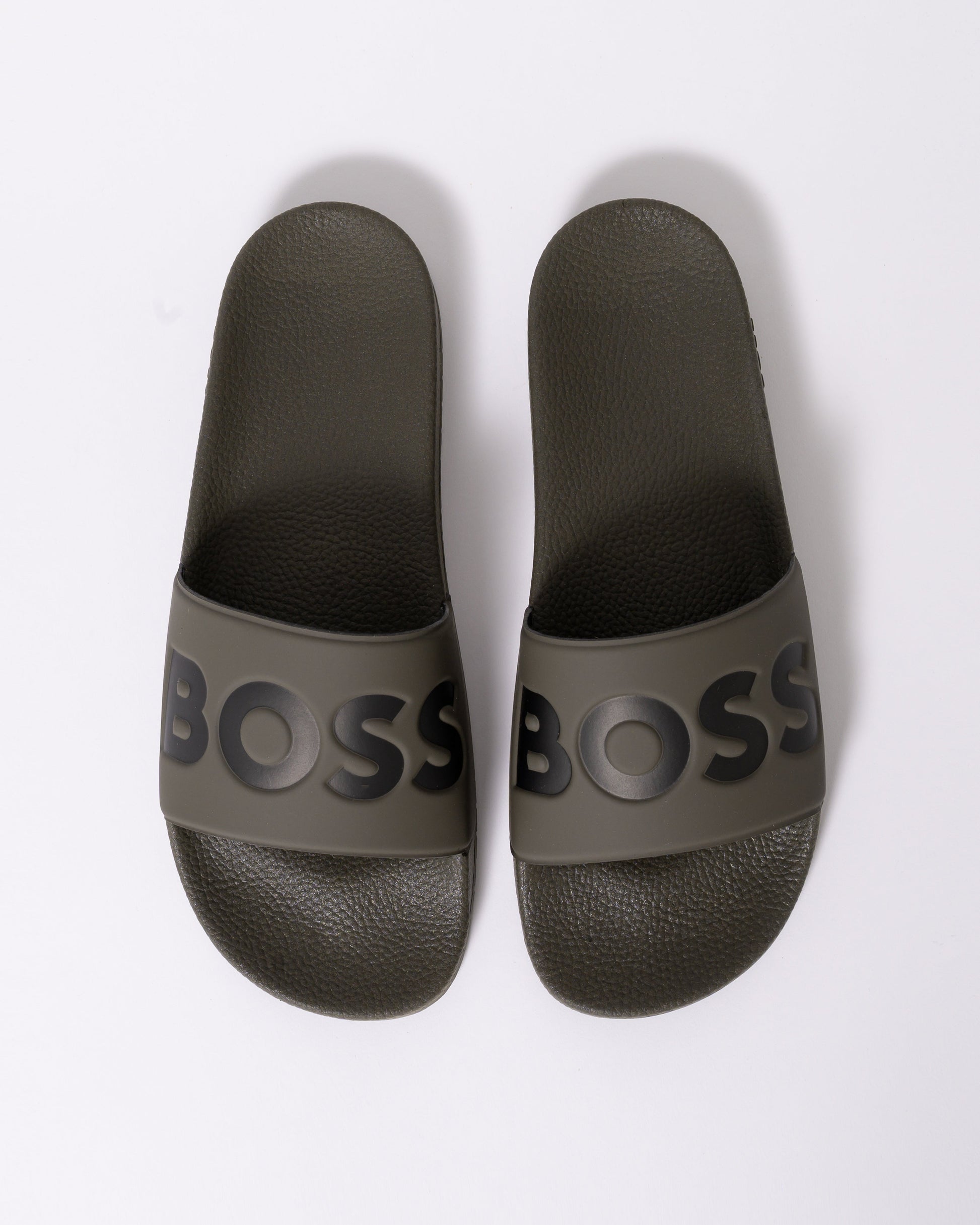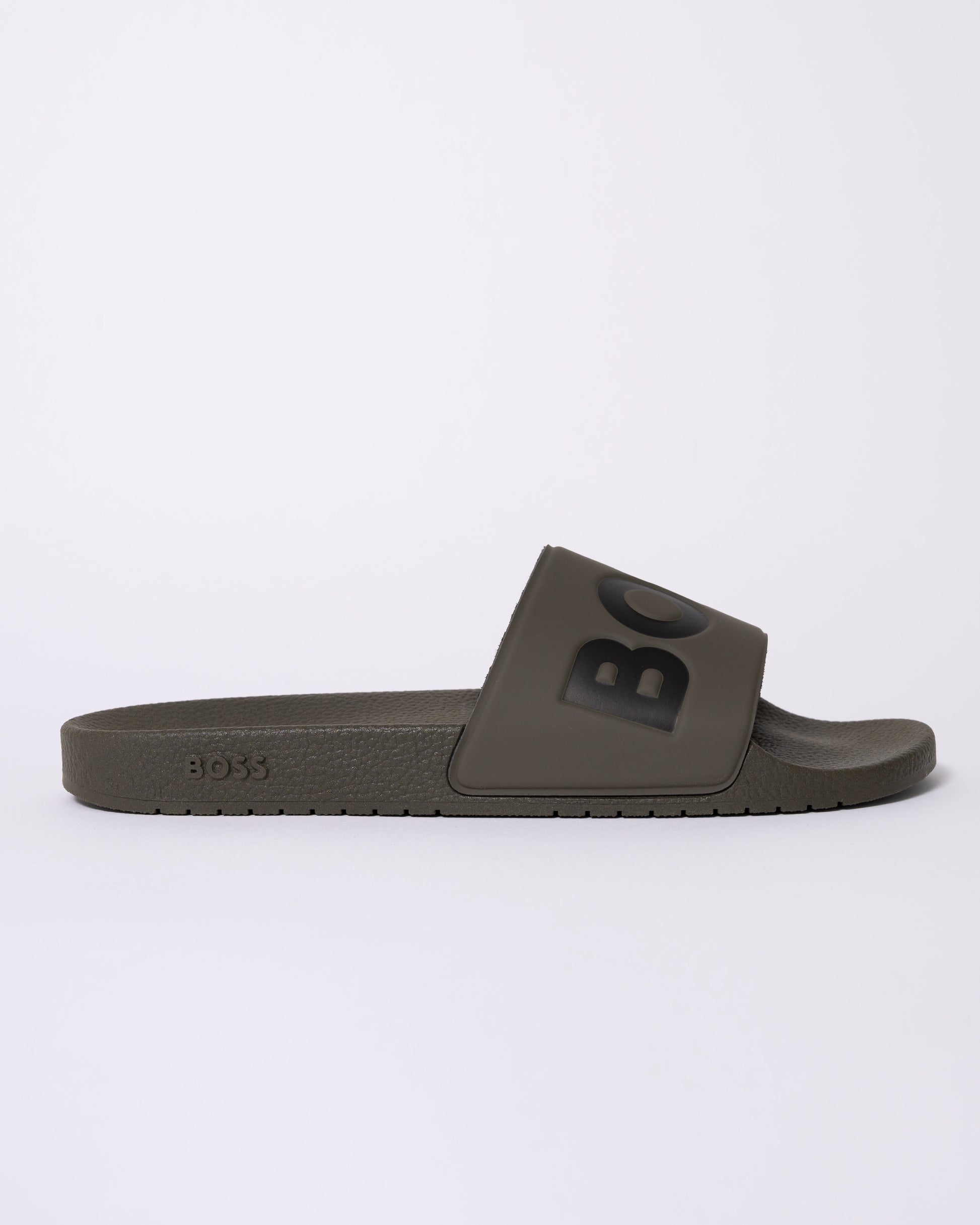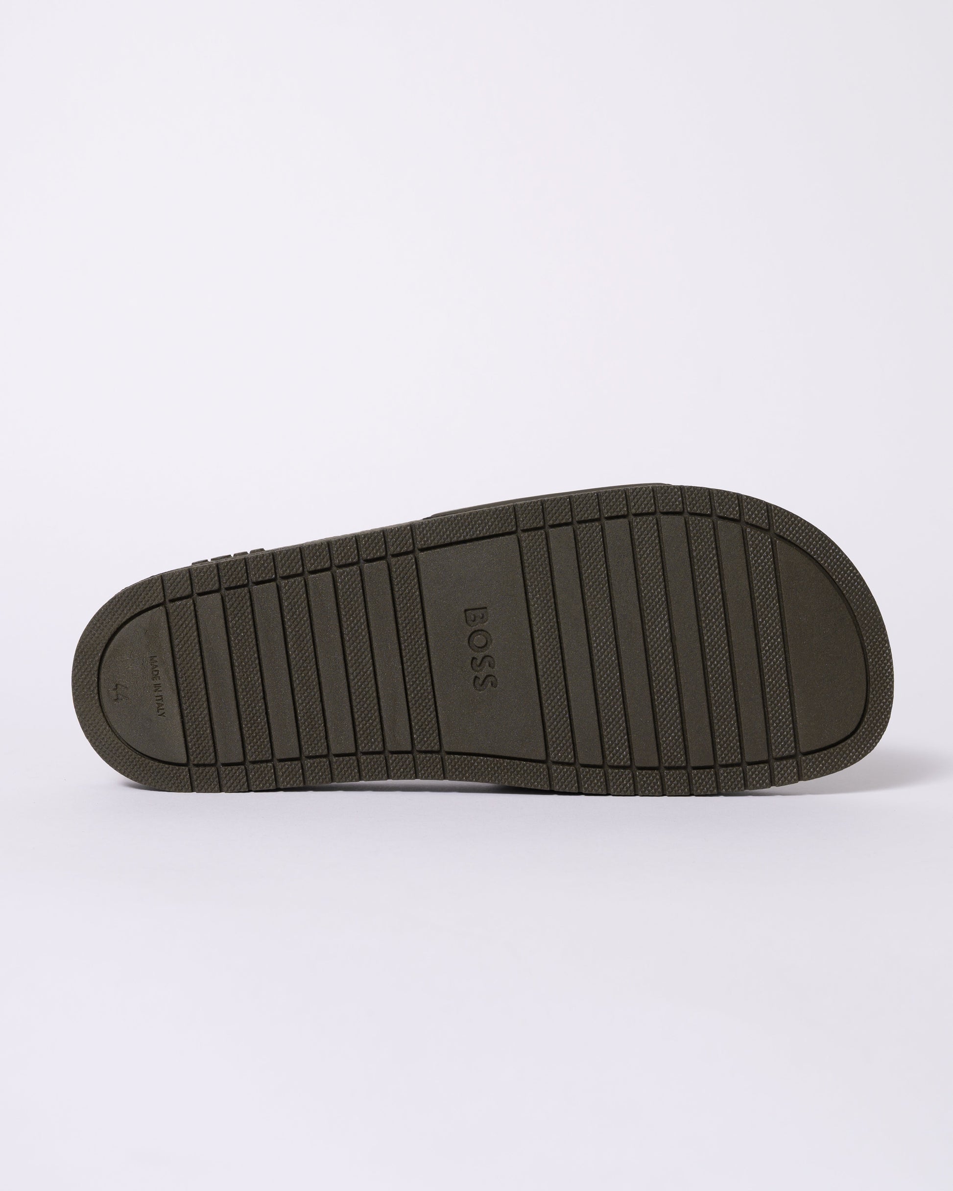 BOSS Orange Aryeh Mens Italian-Made Slides With Large Logo Detail in Medium Brown 210
