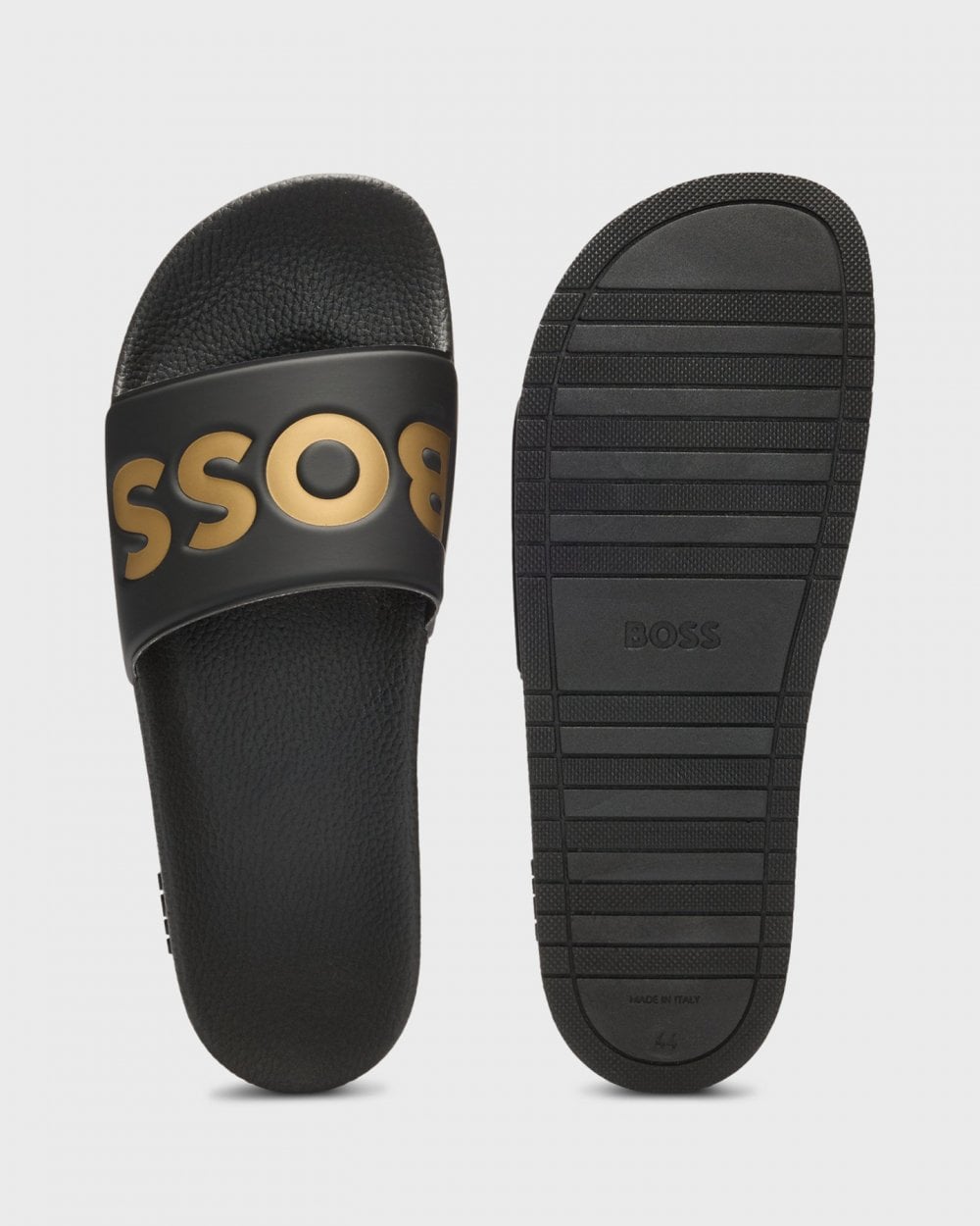 BOSS Orange Aryeh Mens Italian-Made Slides with Large Logo Detail NOS in Black 007