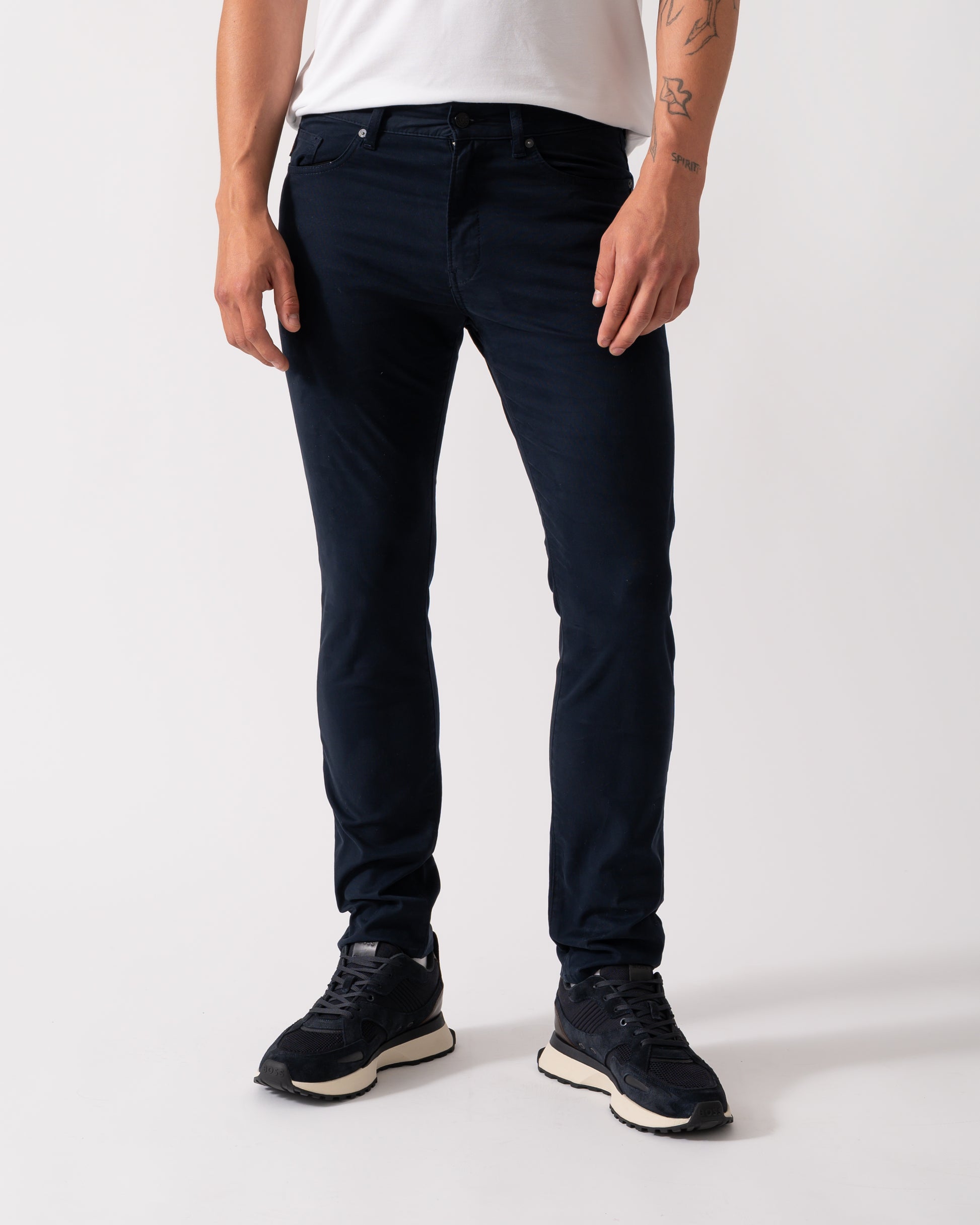 Delaware Mens Slim-Fit Trousers in Stretch-Cotton Moleskin - Dark Blue 404