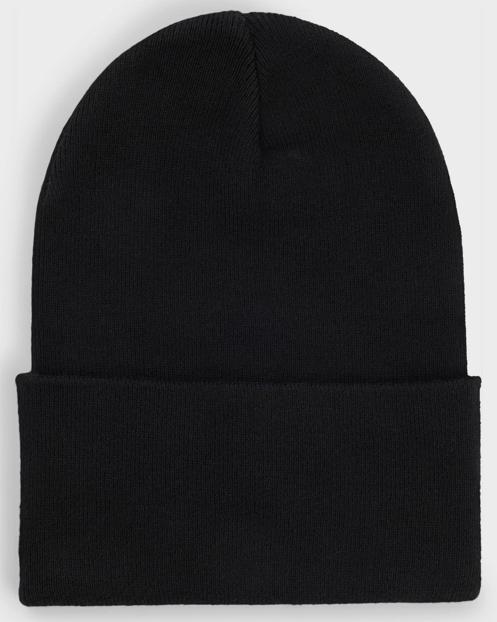 Fantastico R Mens Beanie Hat in Knitted Cotton with Logo Label - Black 001