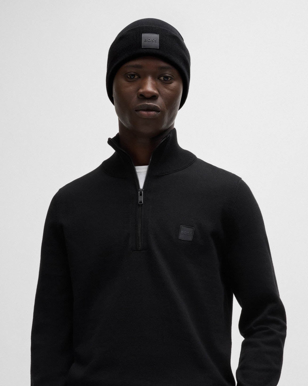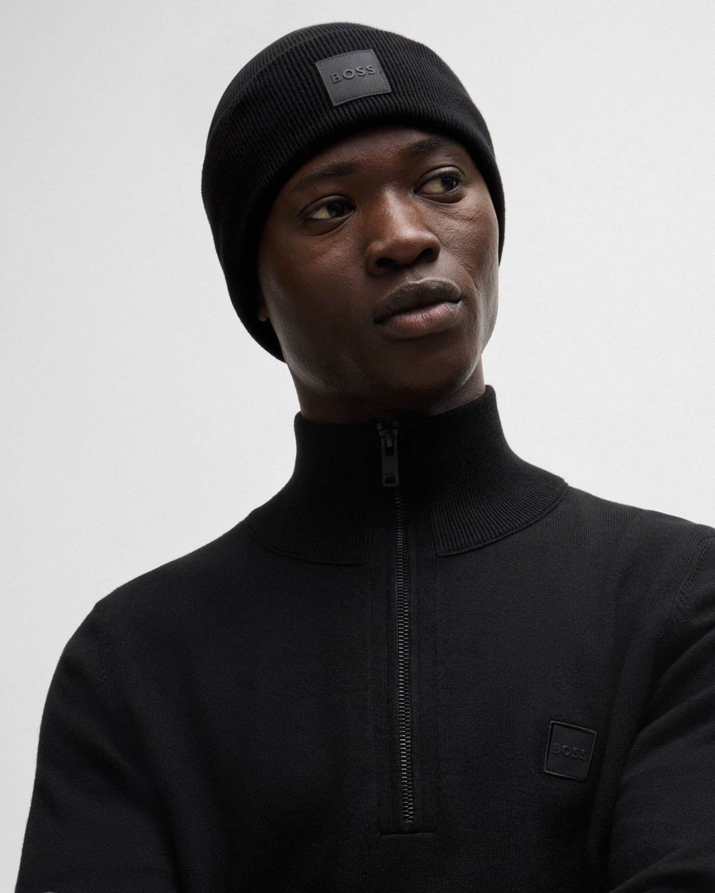 Trimmed with a tonal twill logo label, this BOSS Menswear beanie hat rounds off winter looks with refined style. Double-layered construction in soft cotton.