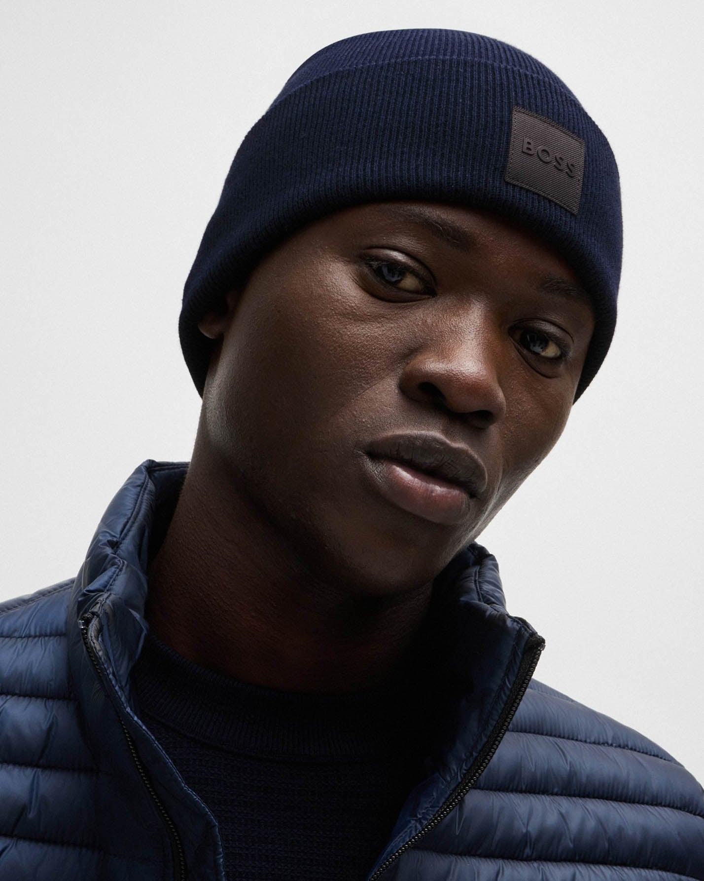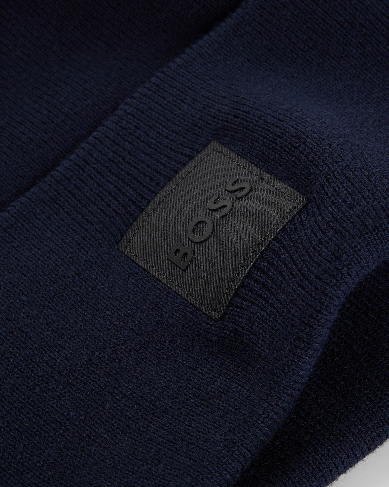 Trimmed with a tonal twill logo label, this BOSS Menswear beanie hat rounds off winter looks with refined style. Double-layered construction in soft cotton.