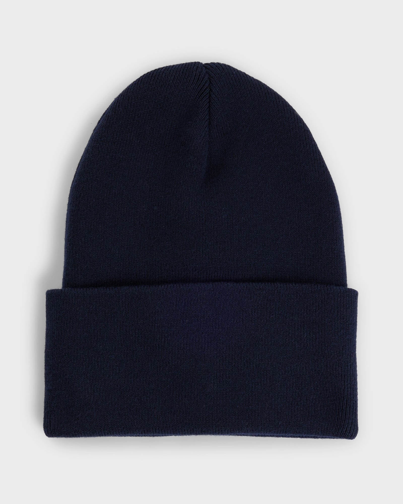 Fantastico R Mens Beanie Hat in Knitted Cotton with Logo Label - Dark Blue 404