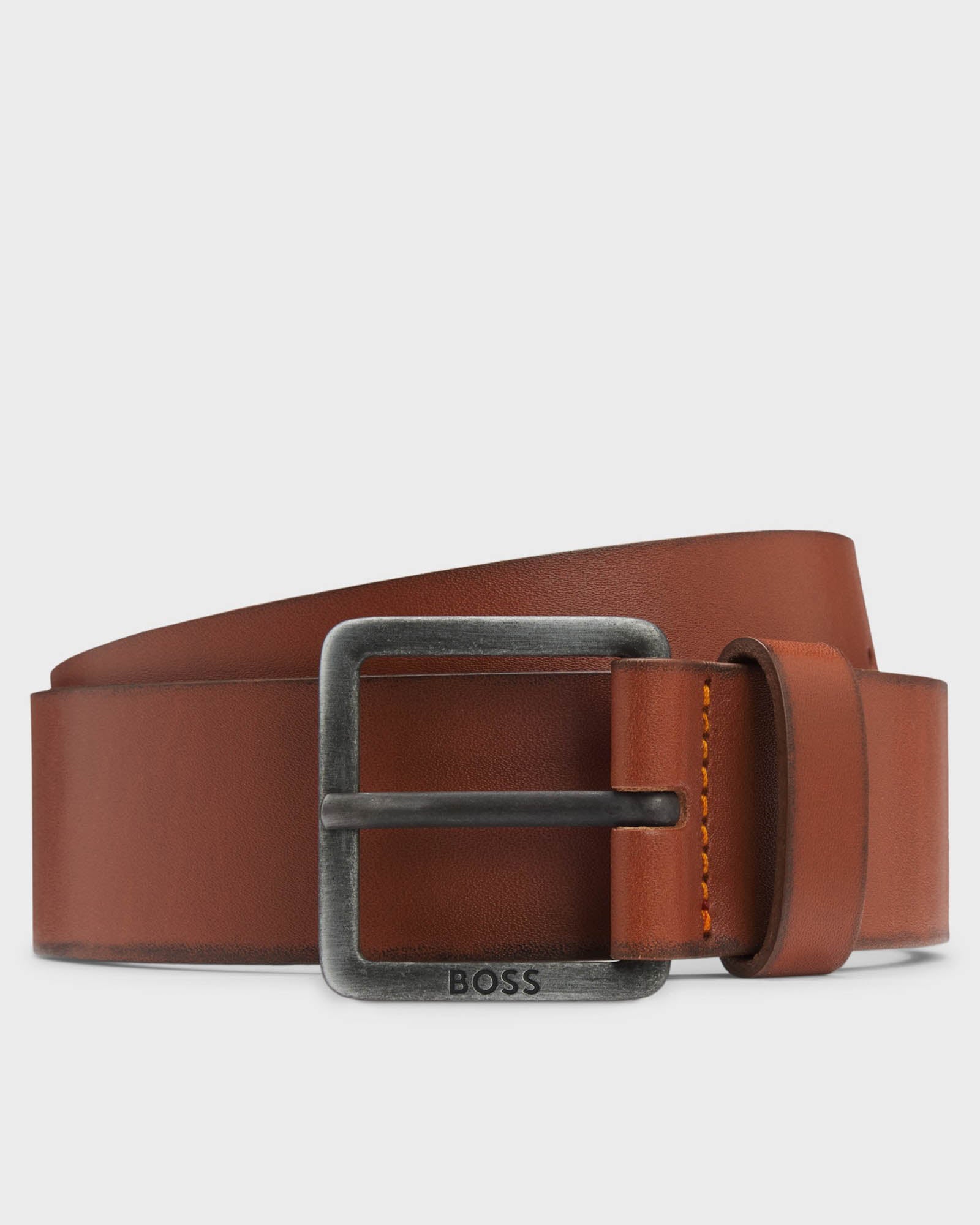Featuring an engraved logo on the pin buckle, this BOSS Menswear belt will round off any casual look. Shaped in smooth leather. 4cm width. For the best fit, we advise ordering a belt one size larger than your waist size.