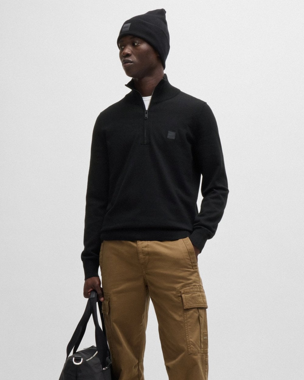 BOSS Orange Kanobix S Mens 1/4 Zip Jumper in Black 001