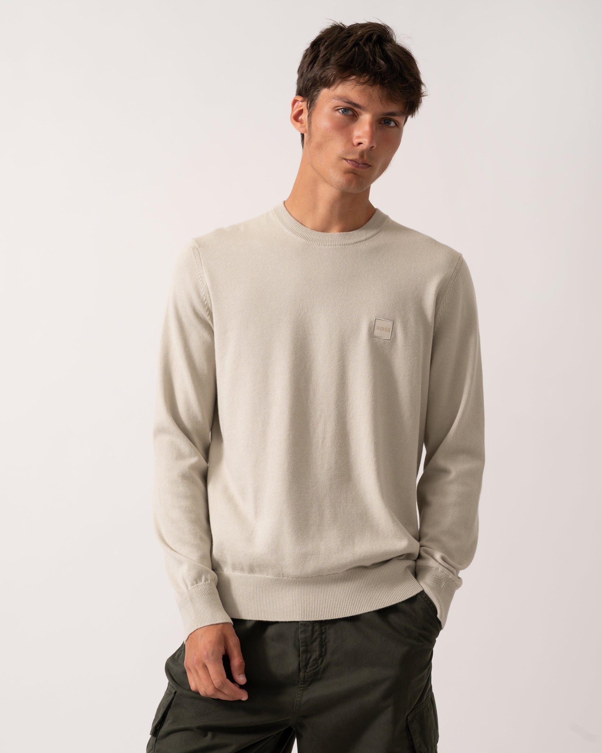 BOSS Orange Kanovano Mens Crew Neck Jumper in Light Beige 271