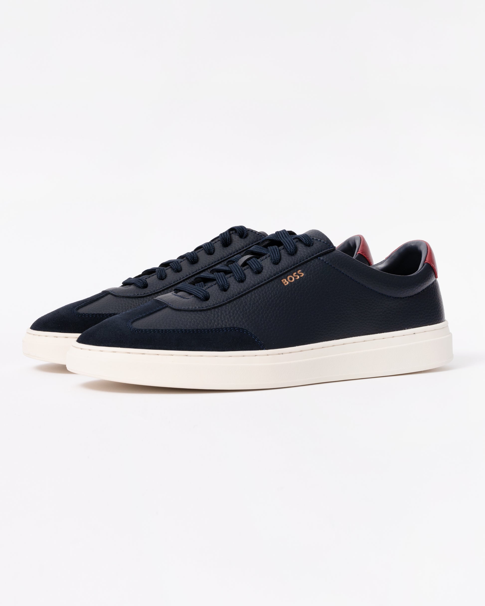 In grained leather with suede accents and a contrast backtab, these BOSS Menswear trainers are packed with casual character. Logo and signature-stripe details.