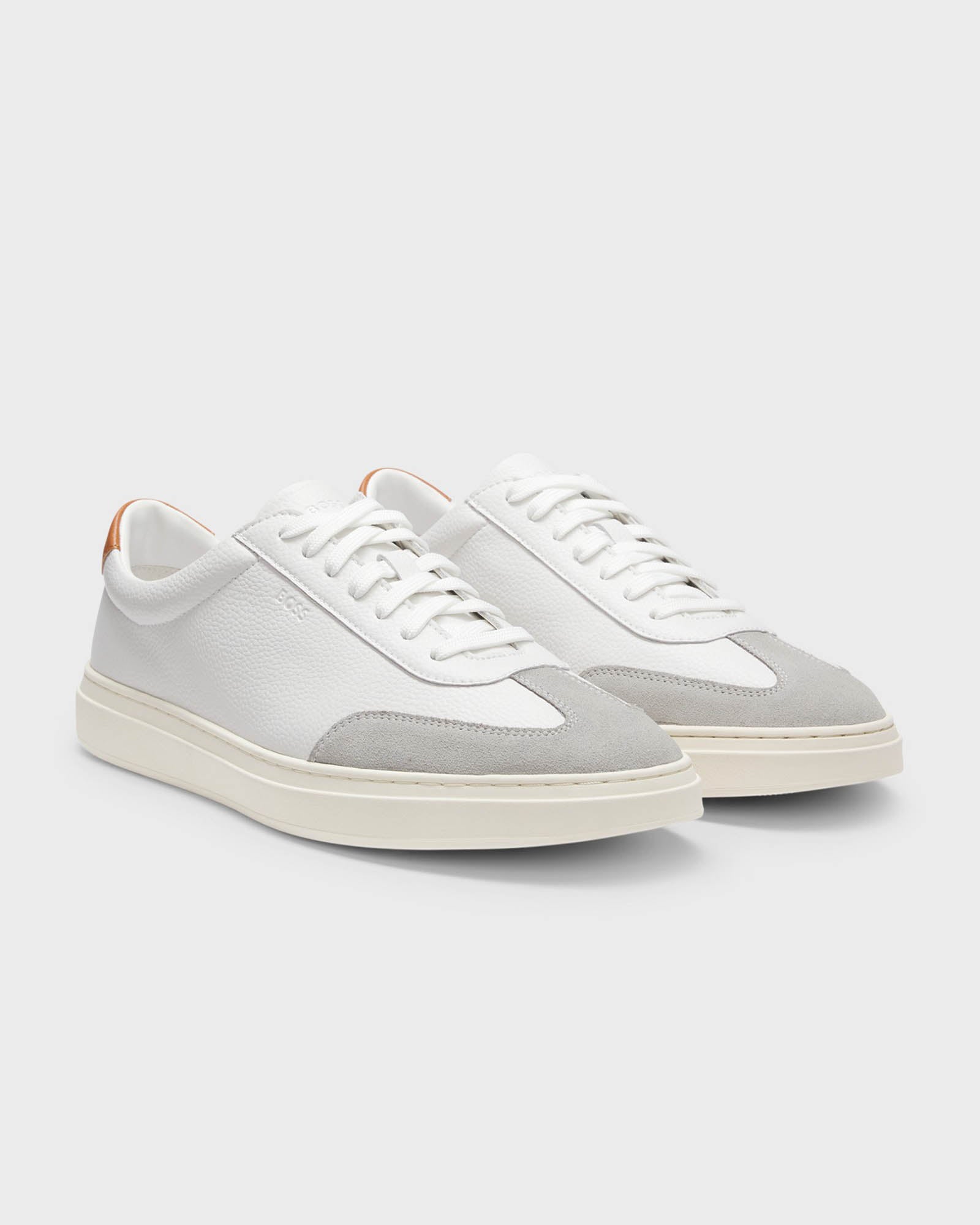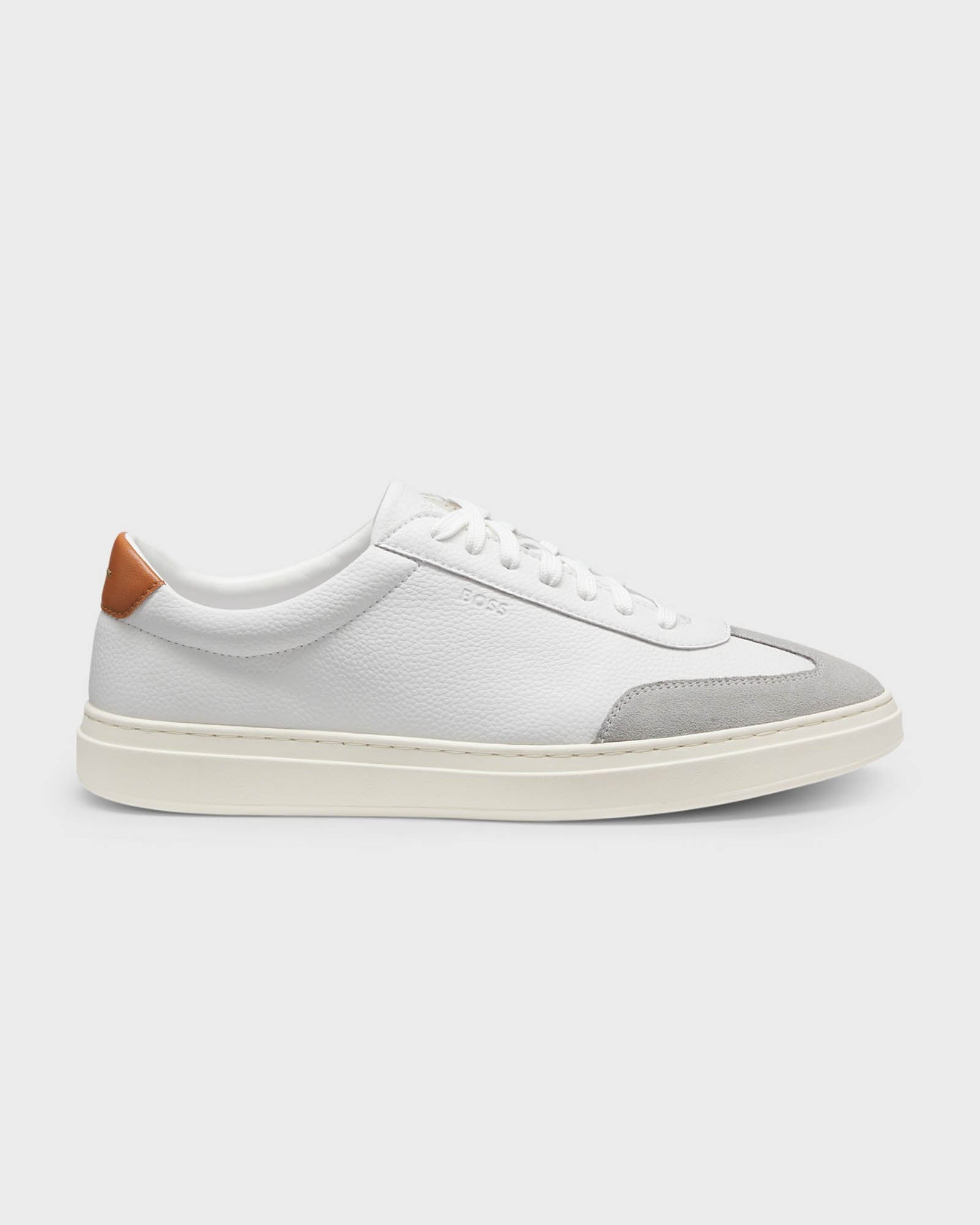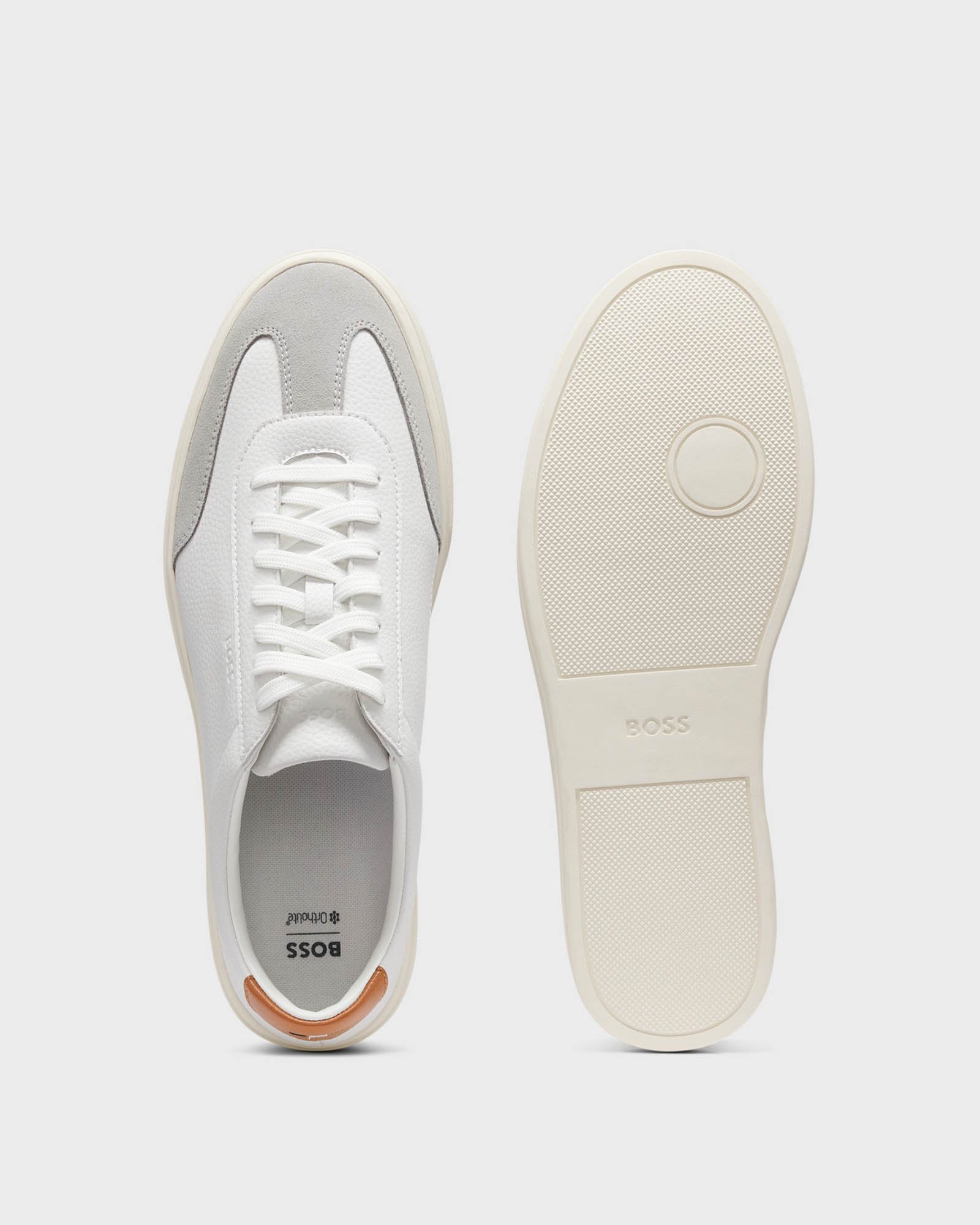 In grained leather with suede accents and a contrast backtab, these BOSS Menswear trainers are packed with casual character. Logo and signature-stripe details.