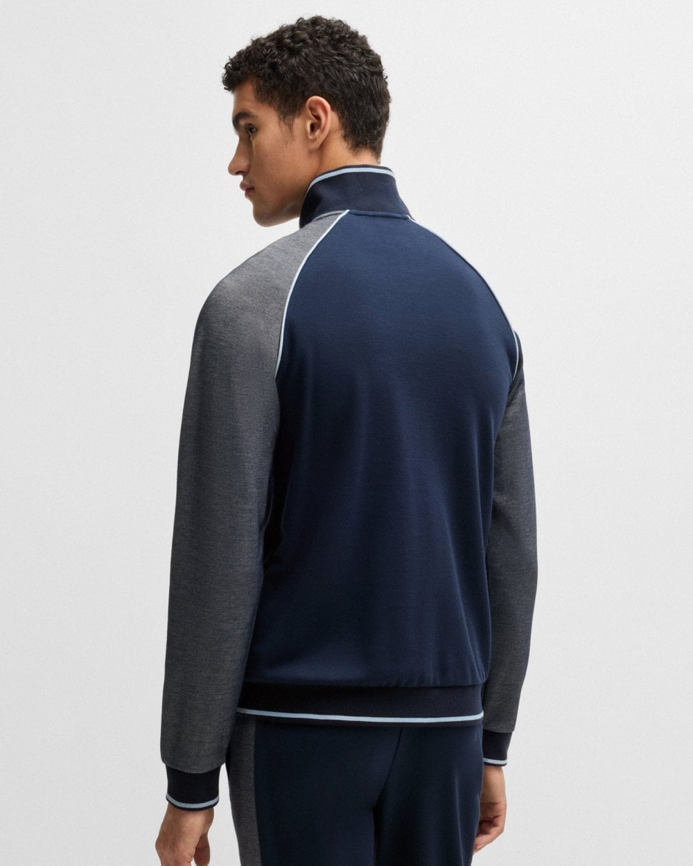 A jacket with mixed structures and a quarter zip, by BOSS Menswear. This regular-fit top features contrast piping, stripes and branding.
