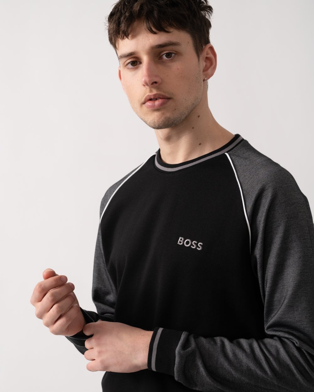 A regular-fit sweatshirt by BOSS Menswear. Featuring contrast branding and piping, this top has mixed structures including breathable piqué.