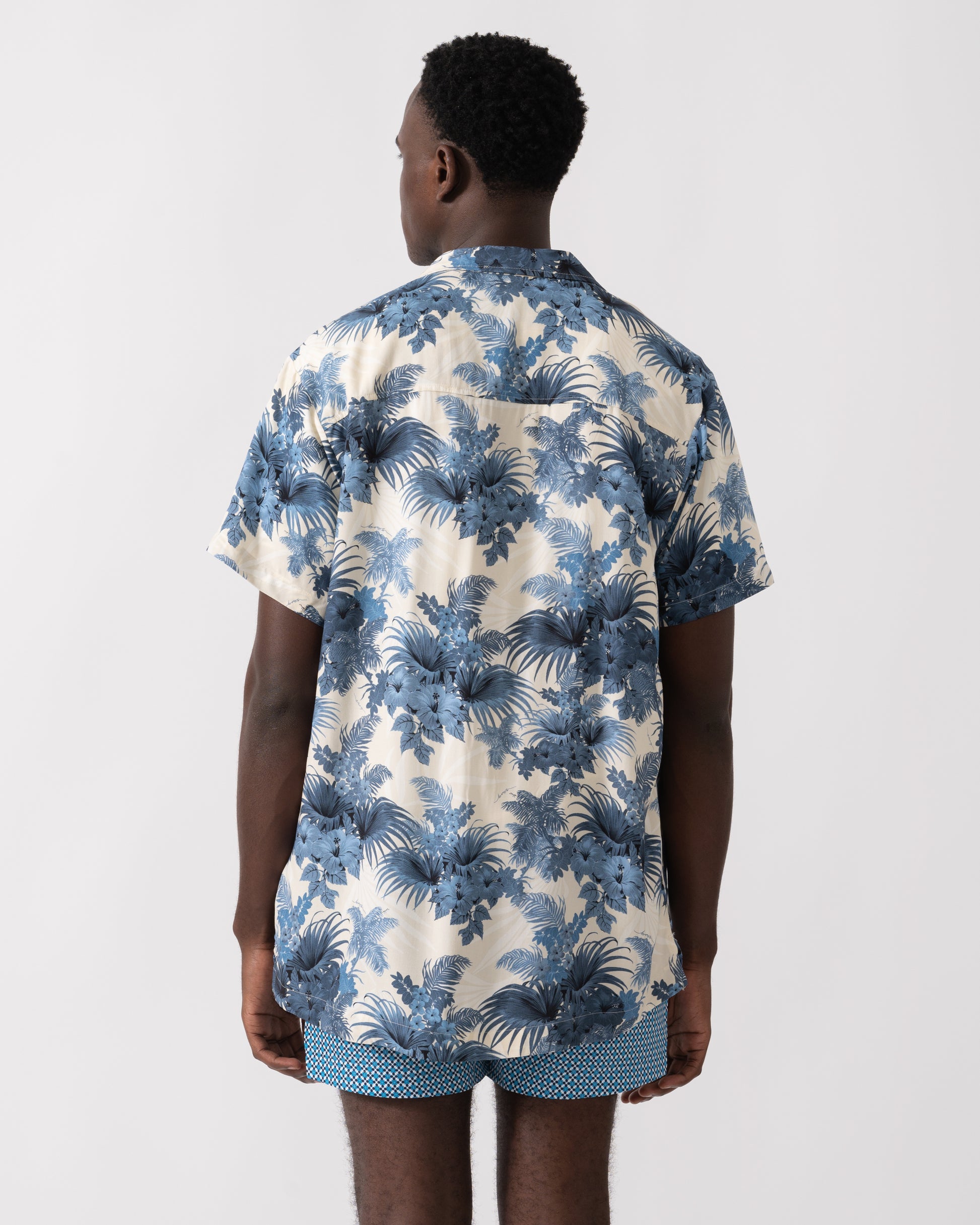 Mens Short Sleeve Floral Print Beach Shirt - Open Blue 483