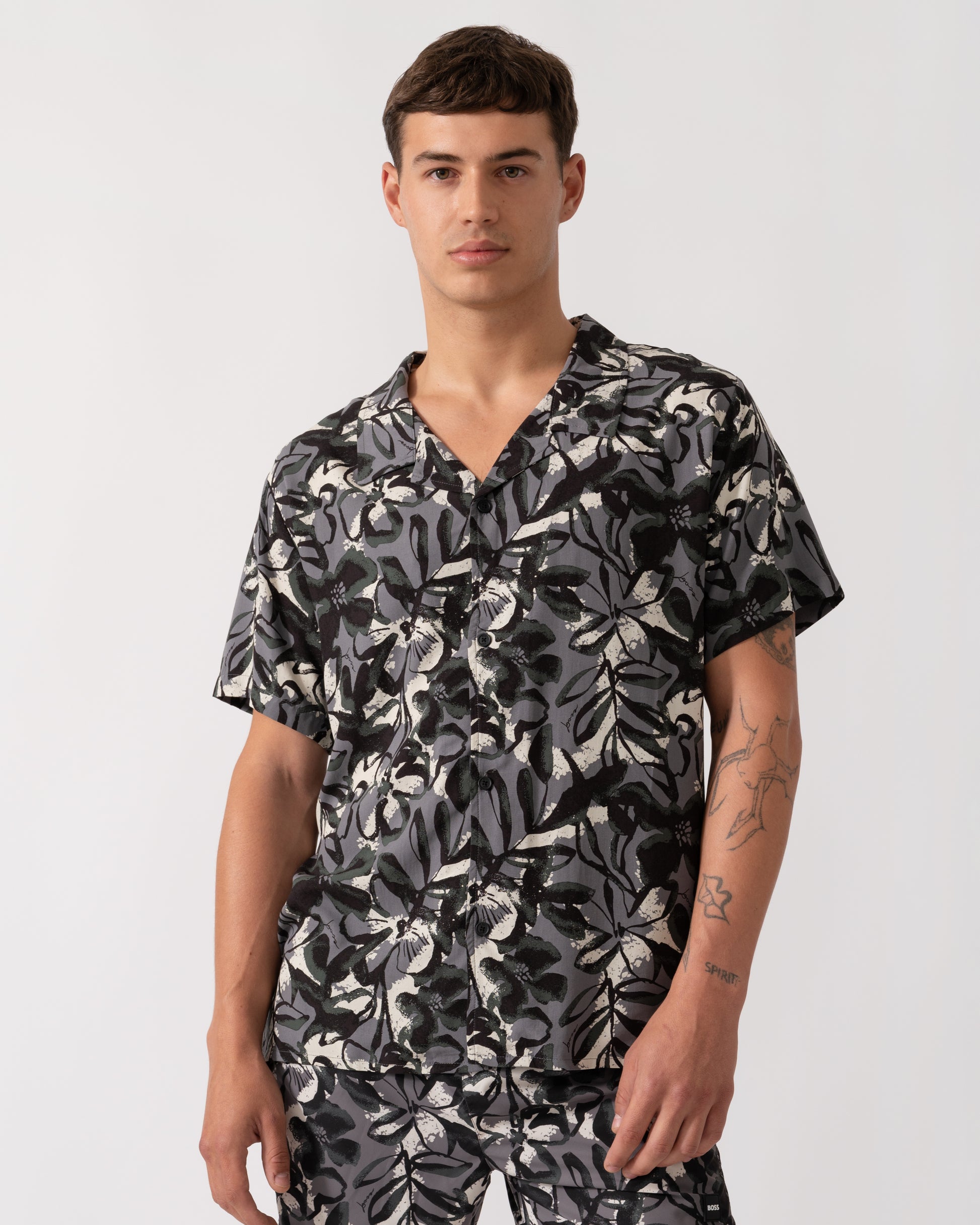 Designed to coordinate with the matching swim shorts, this BOSS Menswear shirt is ideal for days at the beach. Statement all-over print. Logo patch.