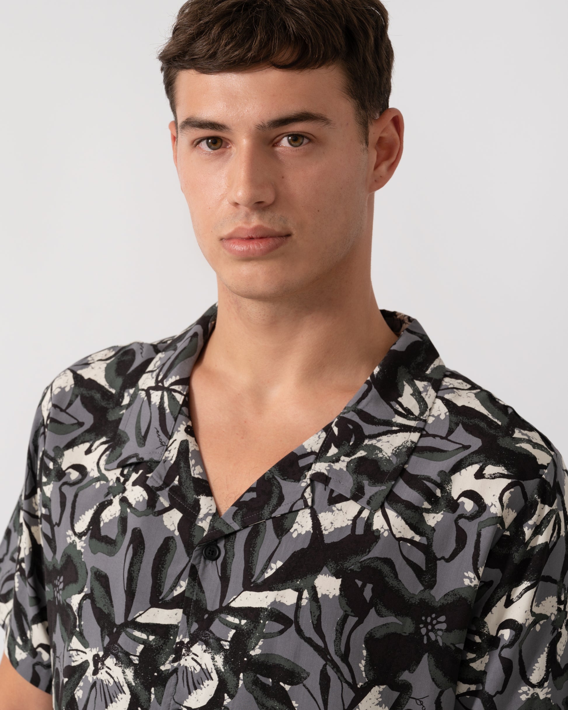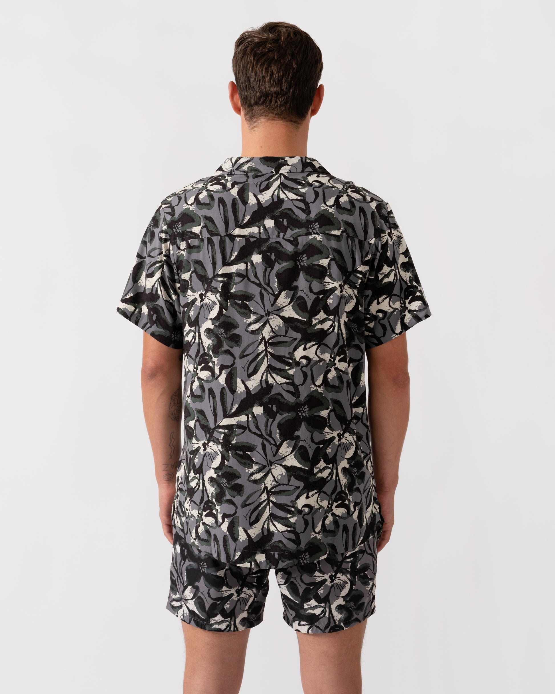 Mens Short Sleeve Floral Print Beach Shirt - Open Grey 062