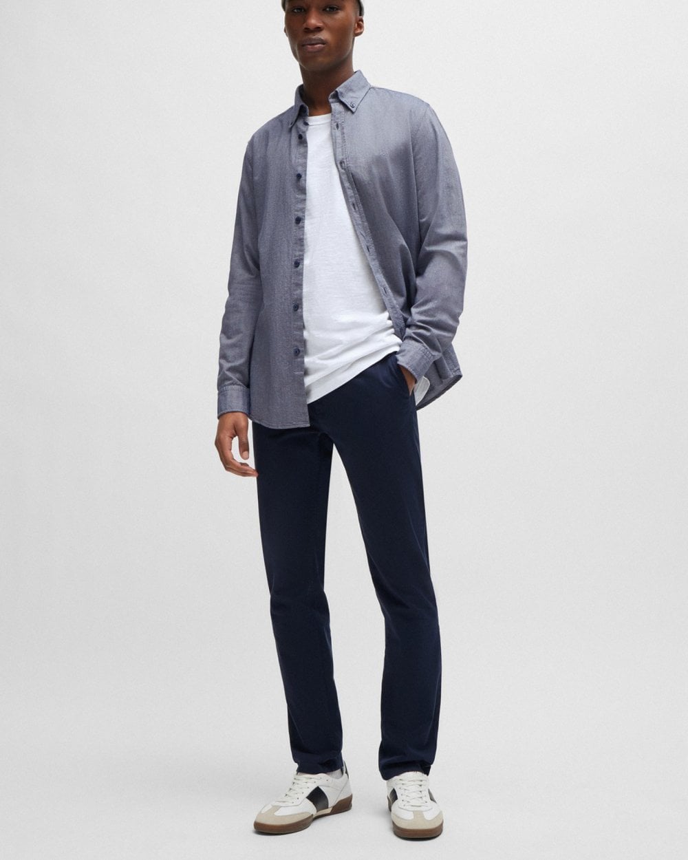 BOSS Orange Mens Slim Fit Chinos in Stretch-Cotton Satin NOS in Dark Blue 404