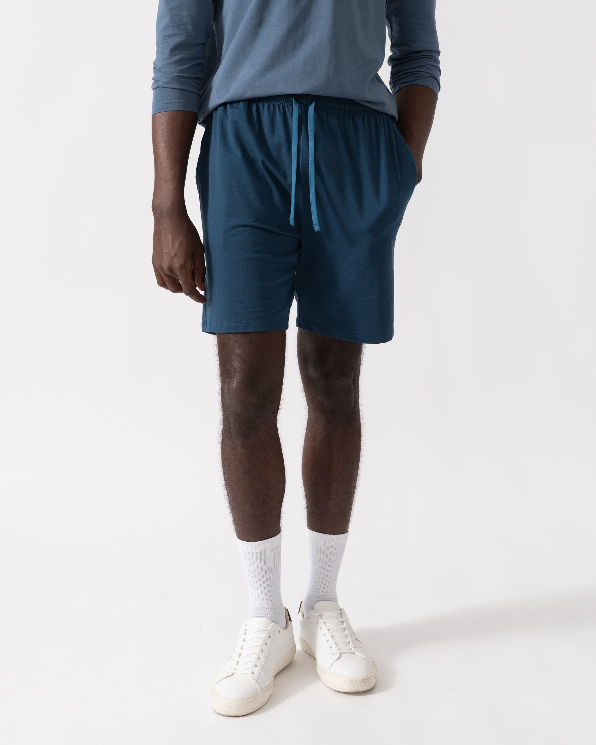 Mix&Match Mens Stretch-Cotton Regular-Rise Loungewear Shorts with Embroidered Logo - Open Blue 480