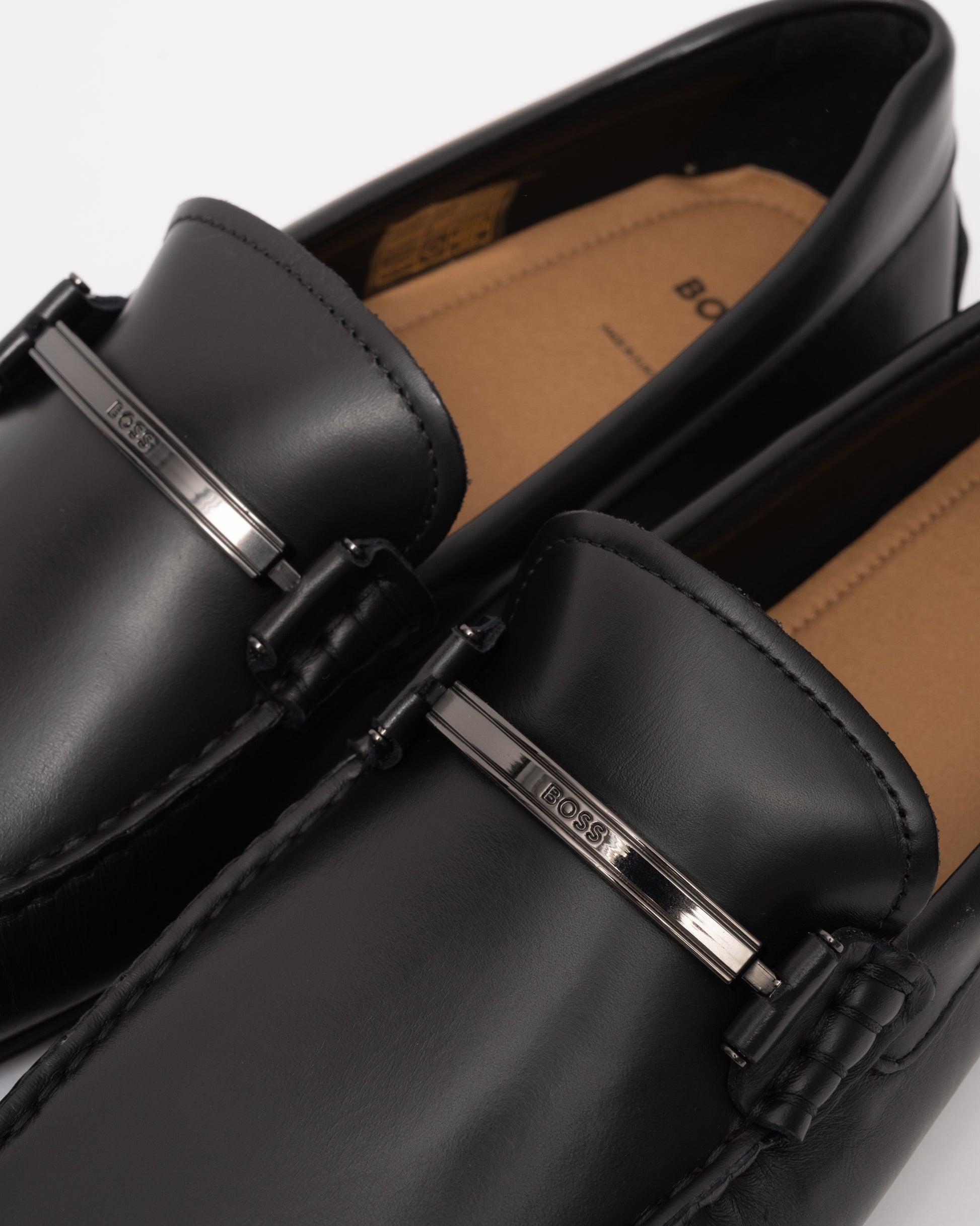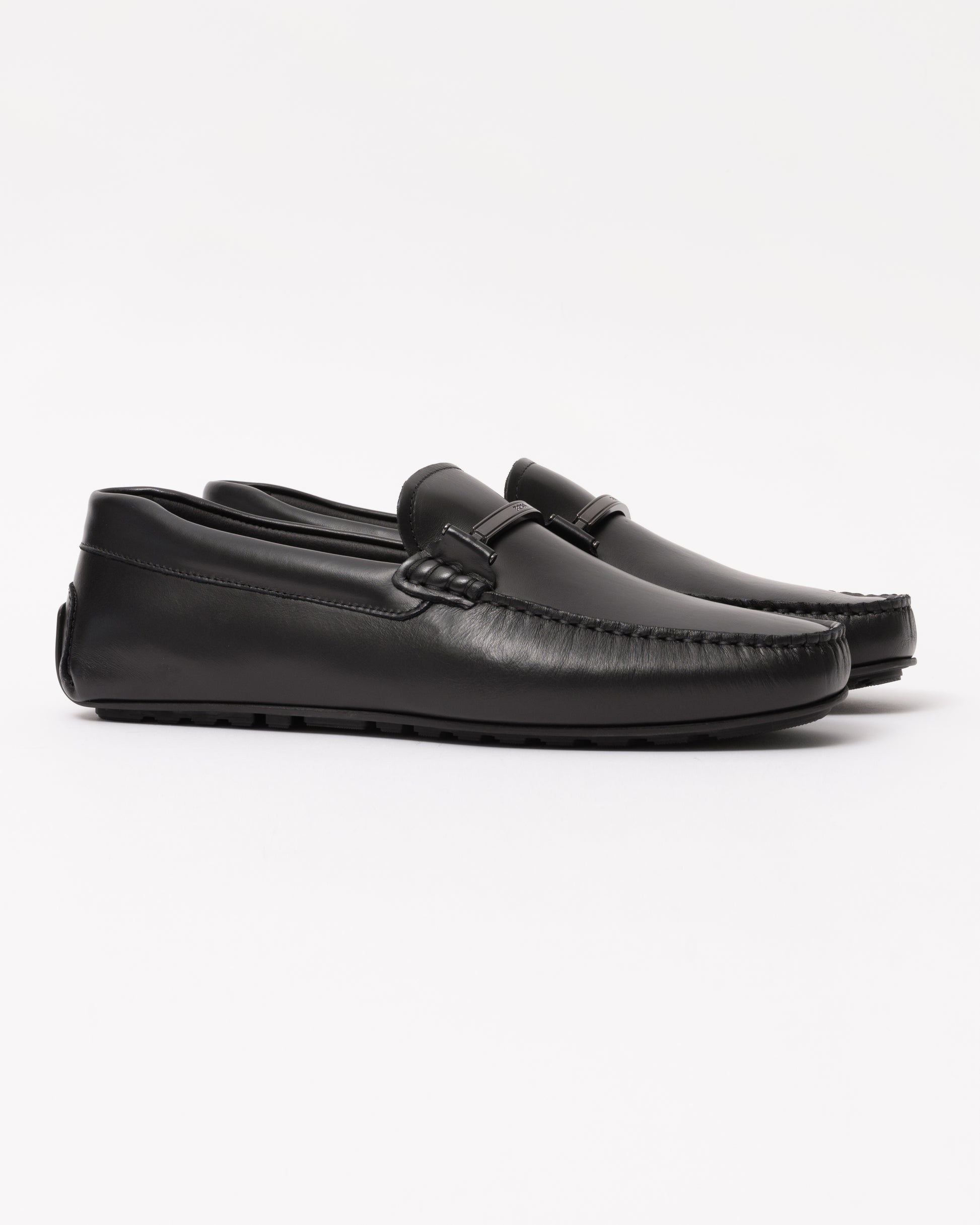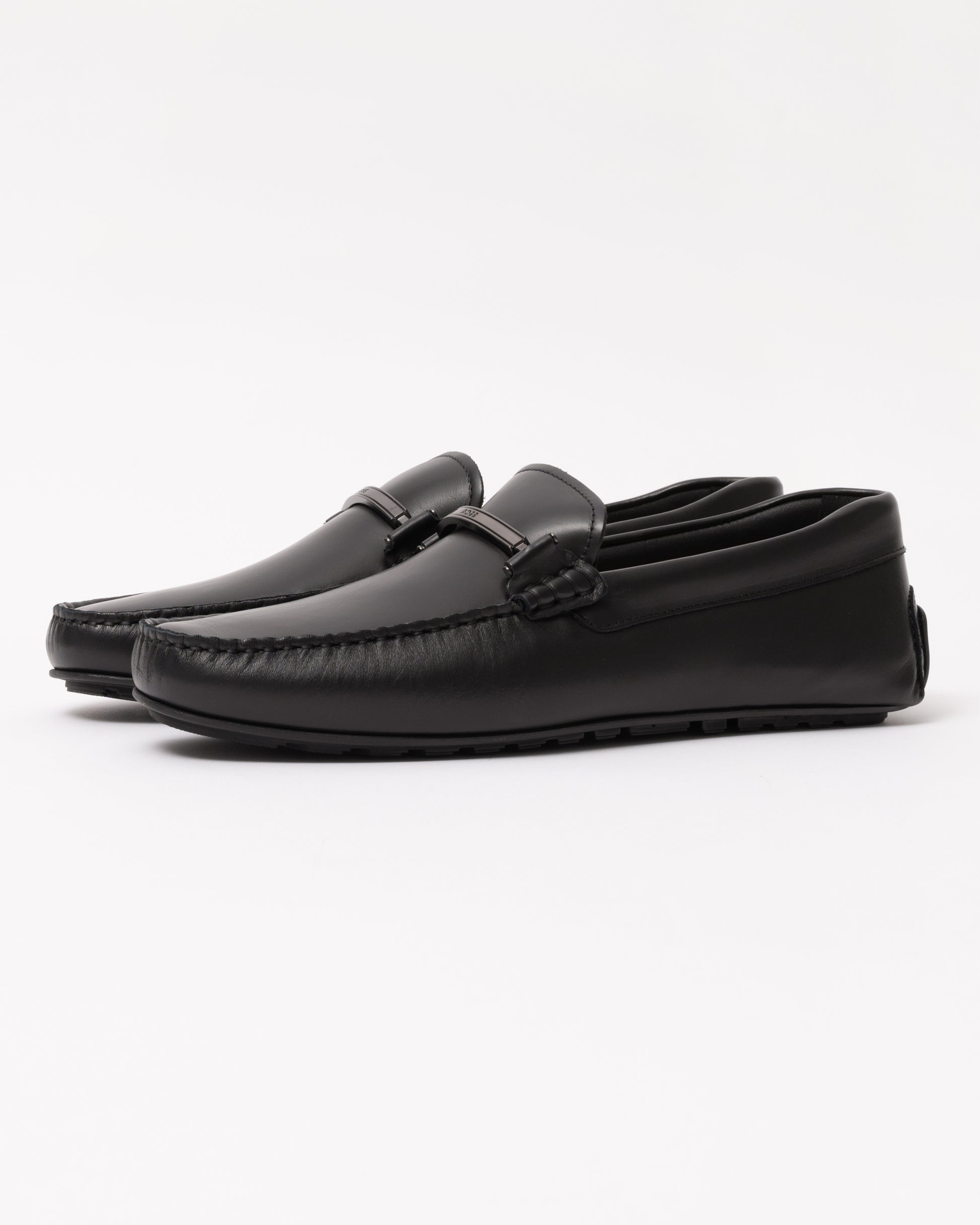 Noel Mens Leather Loafers with Branded Hardware - Black 001