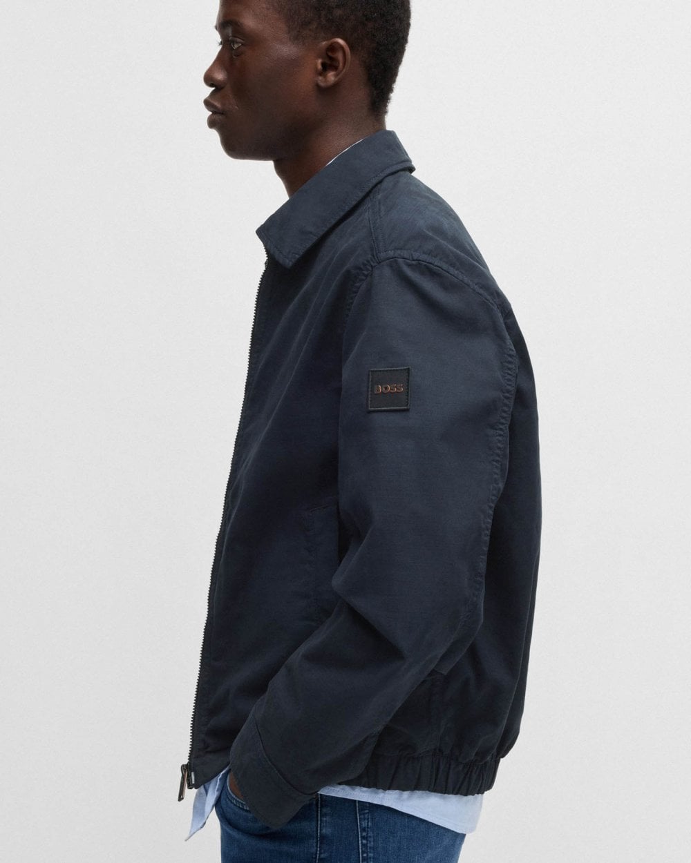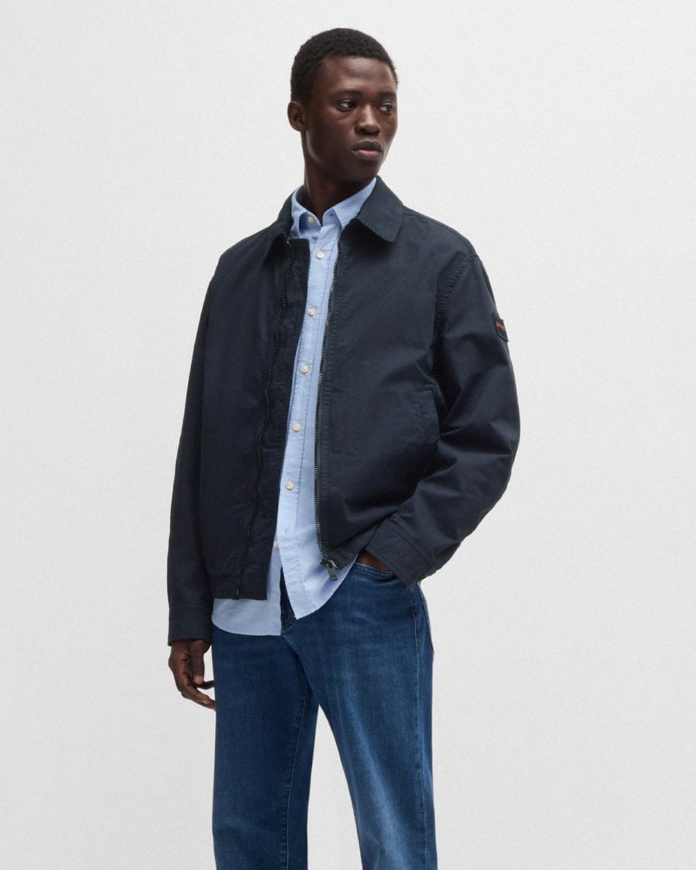 With elasticated details for comfort, this relaxed BOSS Menswear jacket is an essential this summer. Crafted in durable broken twill with faux-horn cuff buttons.