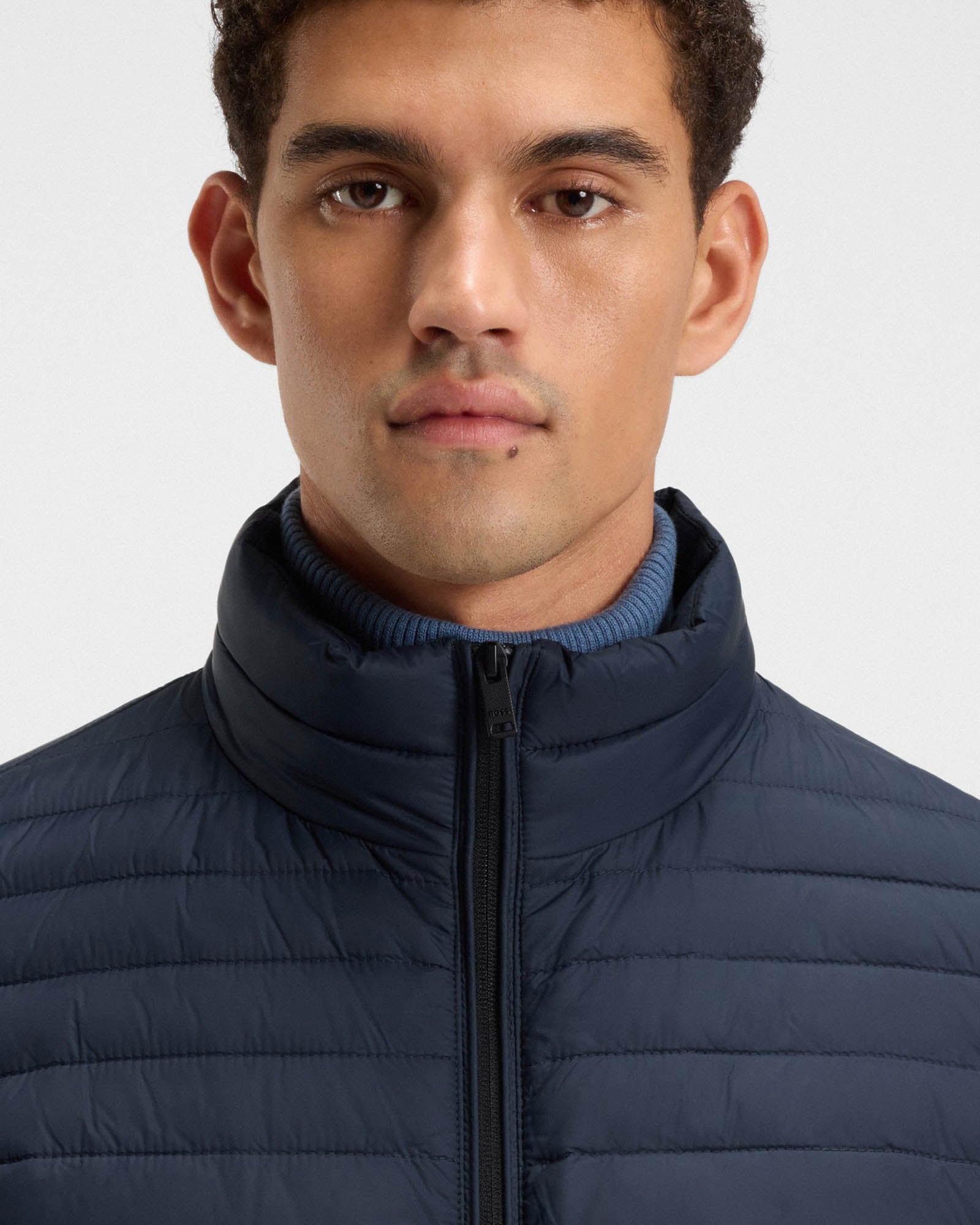 Packable for on-the-go protection, this slim-fit BOSS Menswear jacket is a trans-seasonal must. Water repellent with mixed quilting and lightweight padding. This product contains at least 60% better raw materials. This product is created with recycled polyamide.