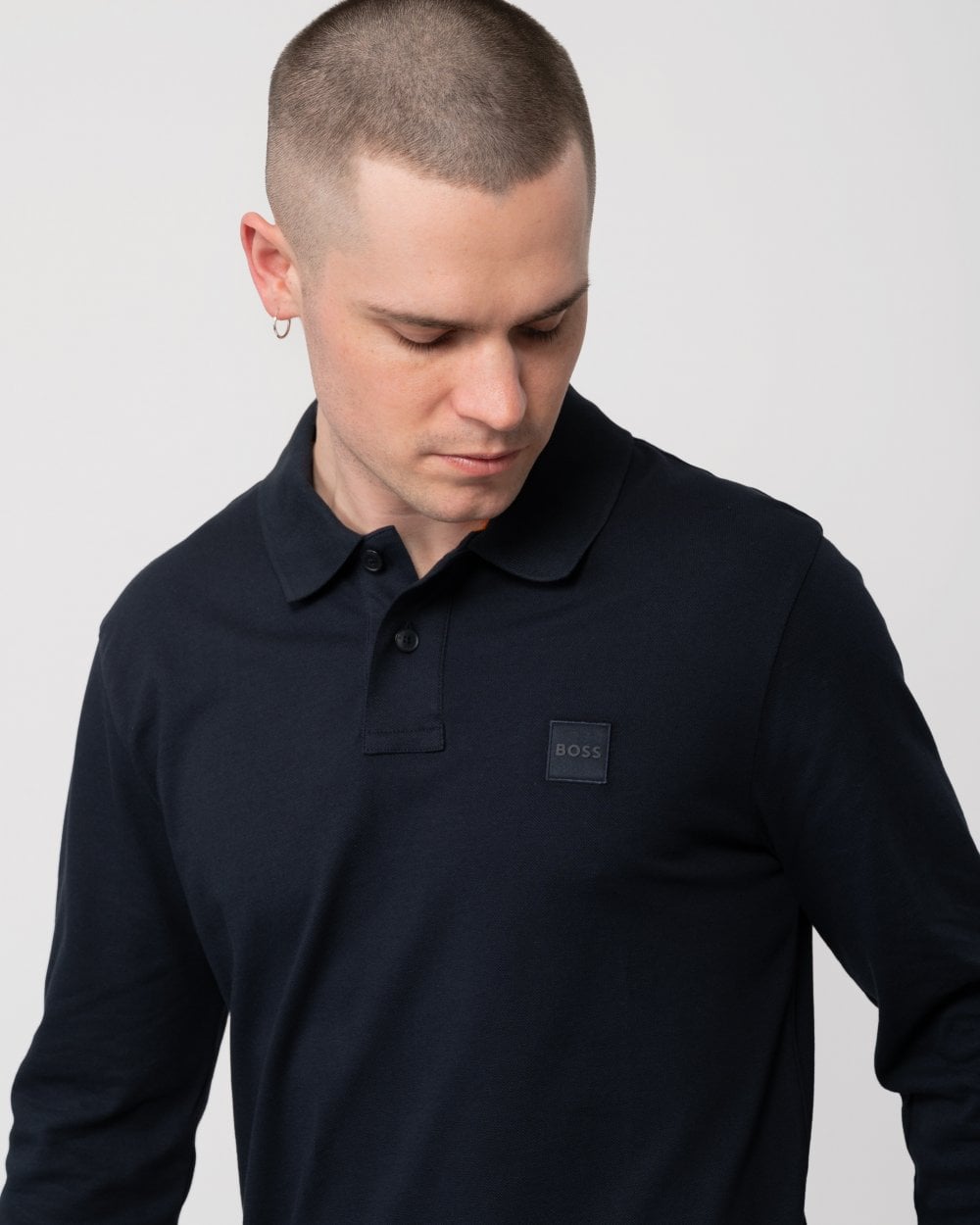 BOSS Orange Passerby Mens Long Sleeve Stretch-Cotton Polo Shirt with Logo Patch NOS in Dark Blue 404