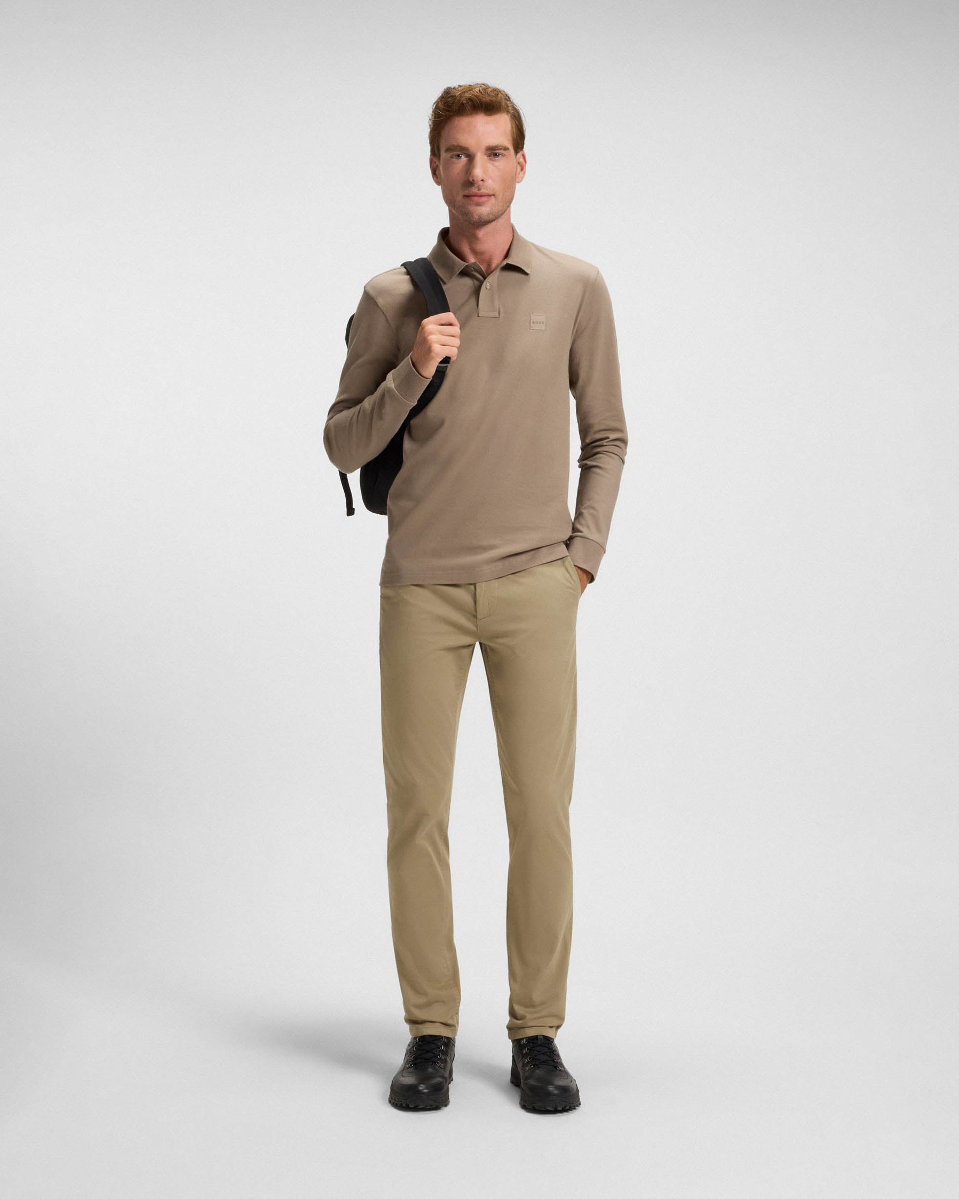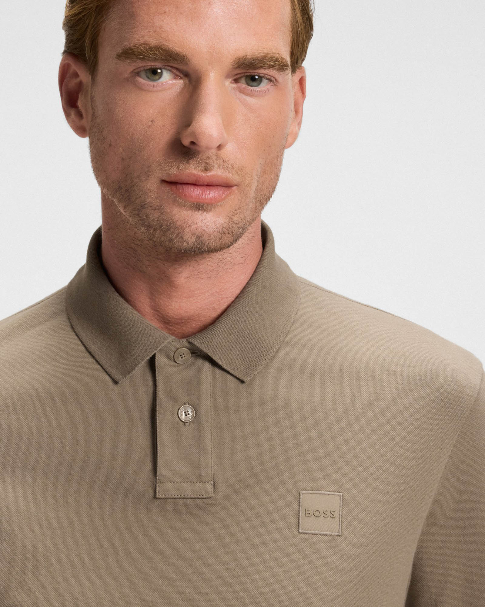 A casual polo shirt with long sleeves by BOSS Menswear, crafted in stretch piqué with a logo patch in a tonal effect.