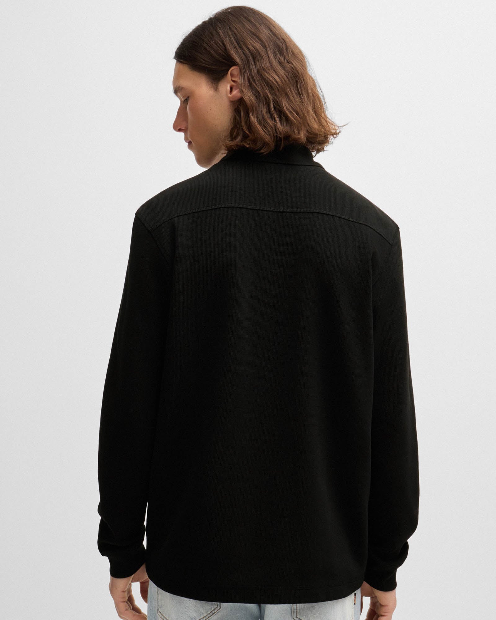 Petempestolong Mens Cotton-Blend Polo Shirt with Waffle Structure - Black 001