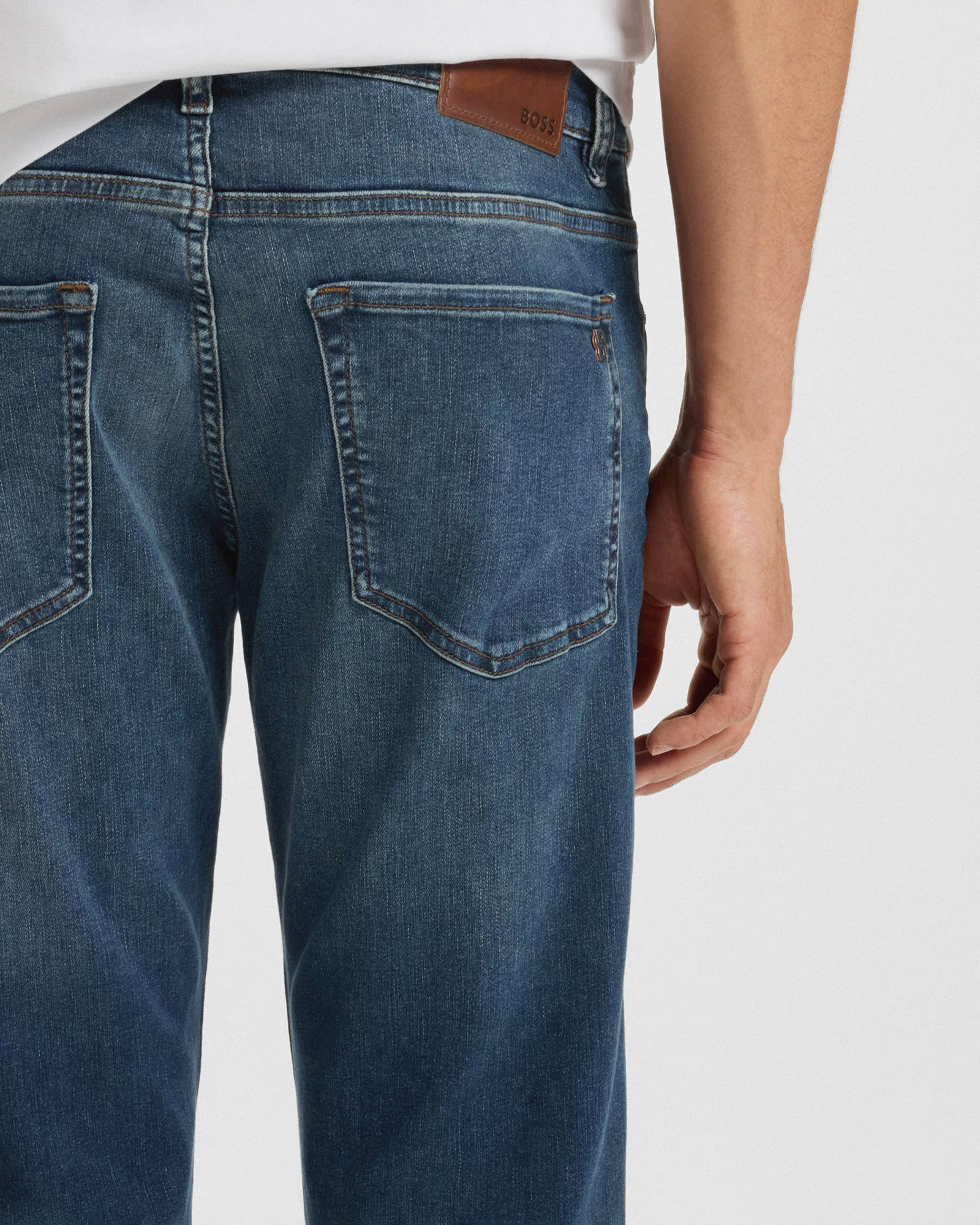 In blue super-stretch denim made with cosy slub yarns, these tapered-leg BOSS Menswear jeans are an ultra-comfortable casual foundation. Versatile straight fit.