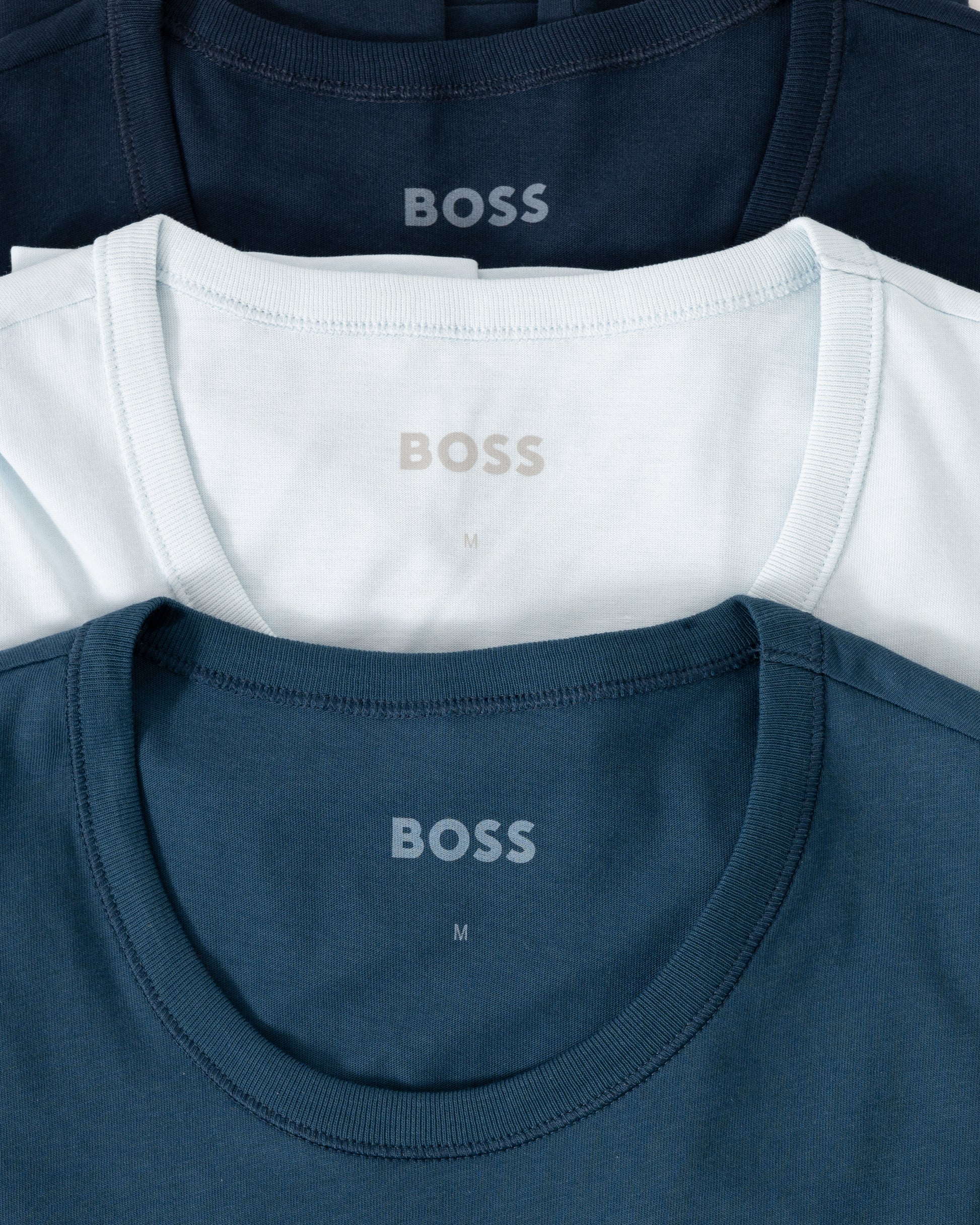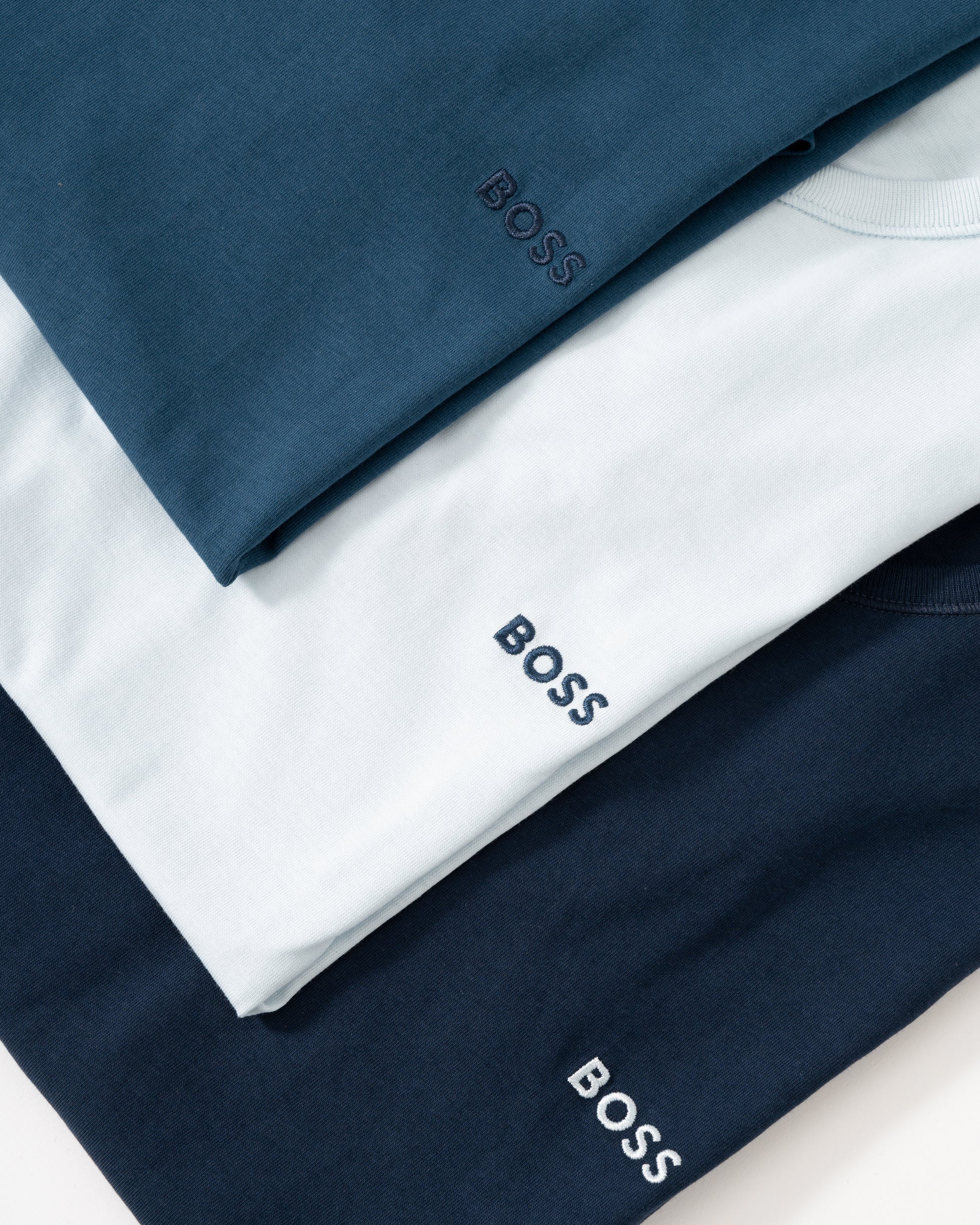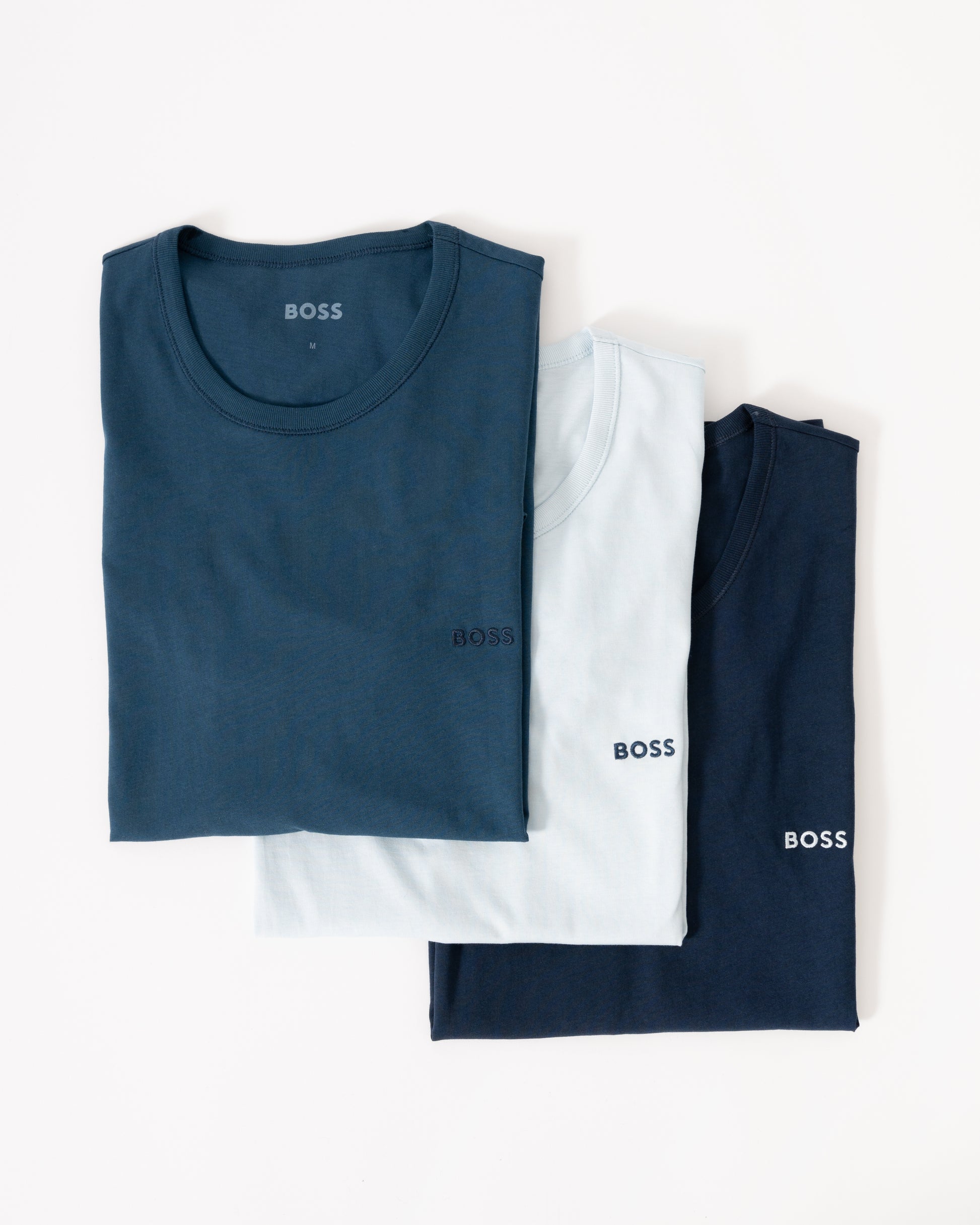 Three super-soft underwear T-shirts by BOSS Menswear. Each top is offered in a straight fit and embroidered with BOSS branding.