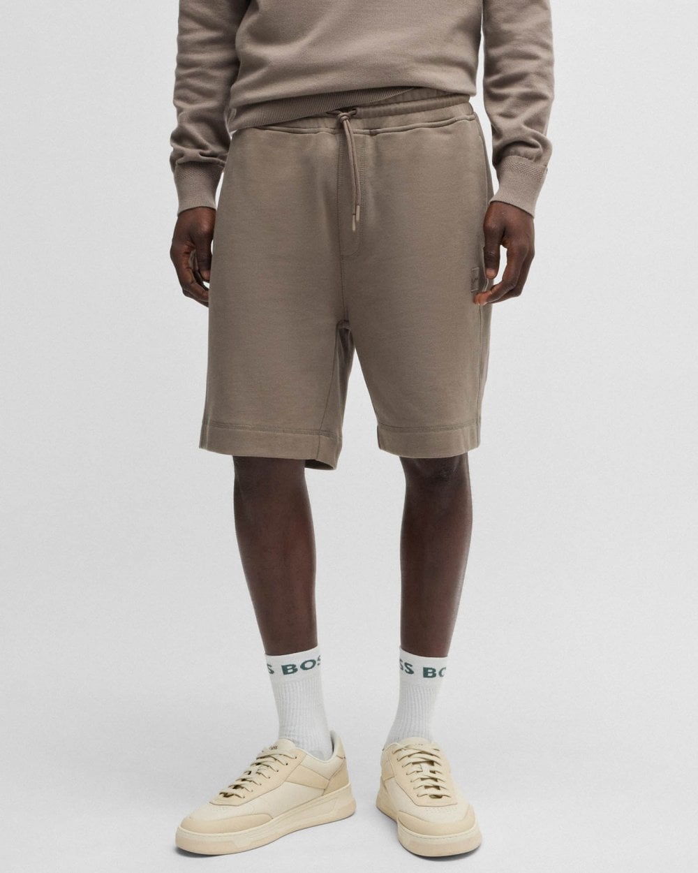 BOSS Orange Sewalk Mens Cotton-Terry Shorts With Logo Badge in Open Beige 294