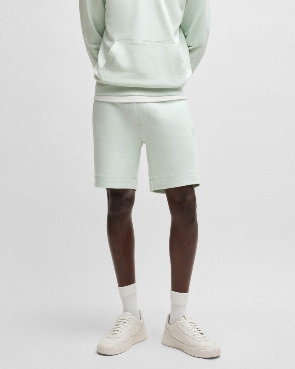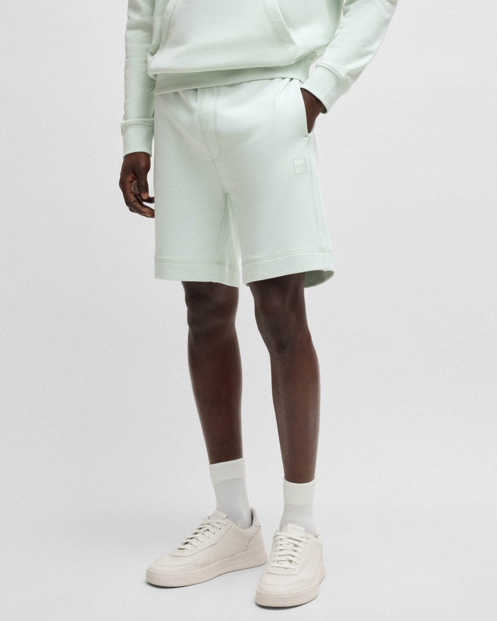 BOSS Orange Sewalk Mens Cotton-Terry Shorts With Logo Badge - Open Blue 466 - Open Blue 466